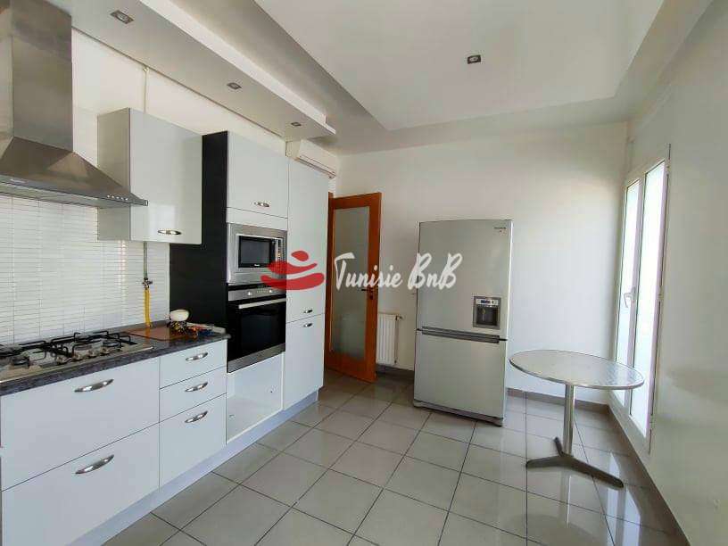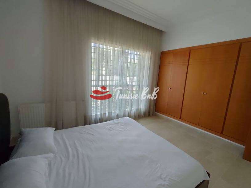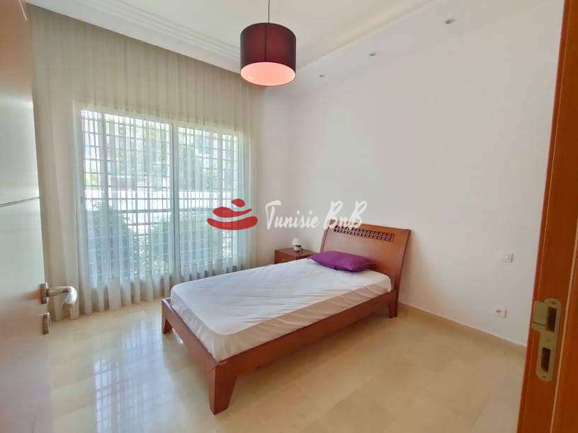 L'agence immobilière Tunisie bnb vous propose à la location un appartement aux jardins de Carthage dans une résidence sécurisée et calme. Il est composé d'un salon , salle à manger avec balcon , une cuisine équipée , une salle d'eau , et deux chambres à coucher avec une salle de bain commune. Une place de parking au sous-sol est disponible