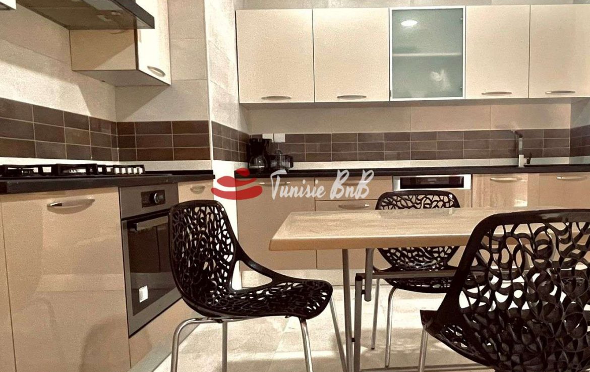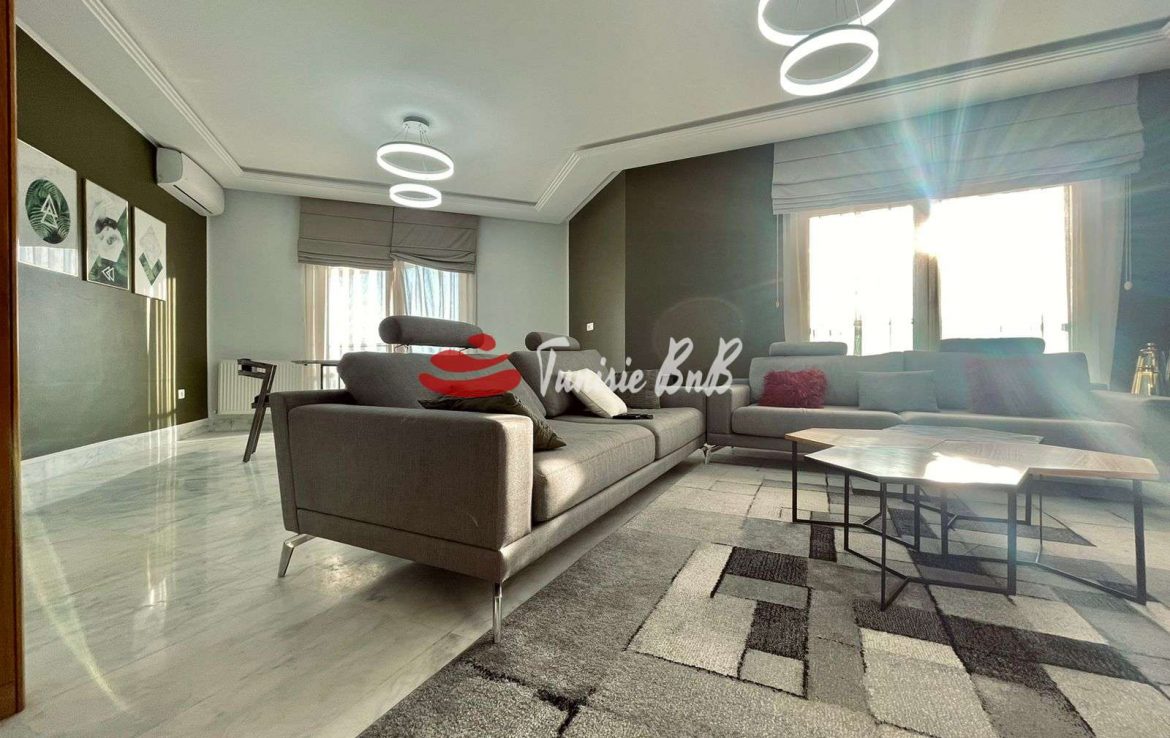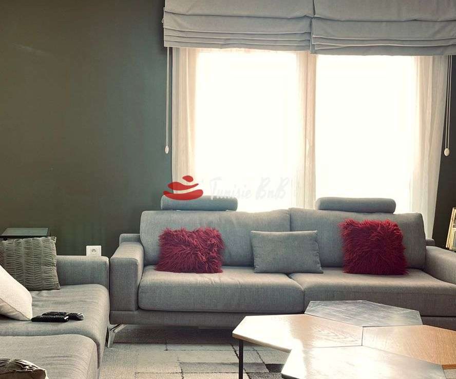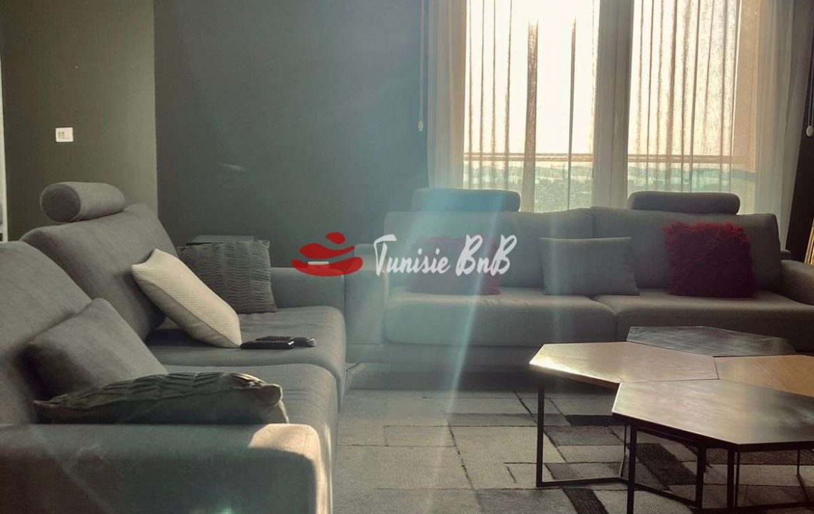 L'agence immobilière Tunisie BnB propose à la location un appartement S 3 richement meublé dans une résidence calme et sécurisée. L'appartement est d'un grand salon une salle à manger, une cuisine équipée et une salle d'eau invité. La partie nuit une suite parentale et deux chambres avec salle de bain commune. Une place parking est disponible au sous sol.