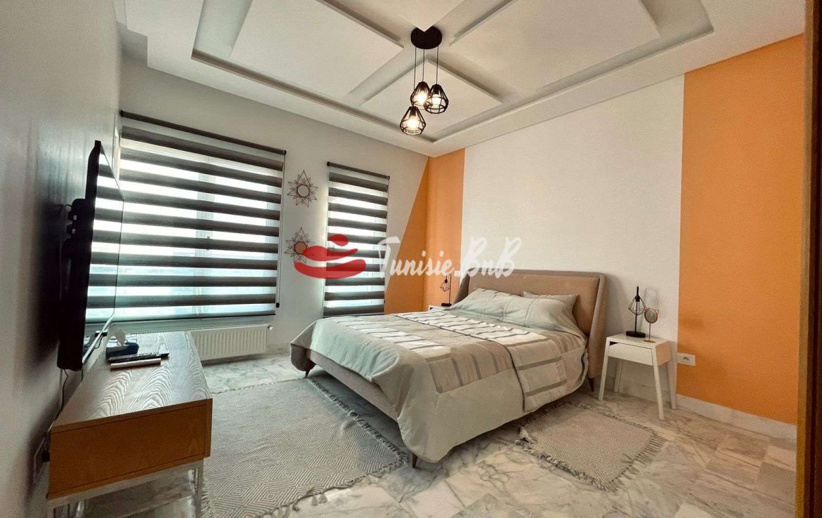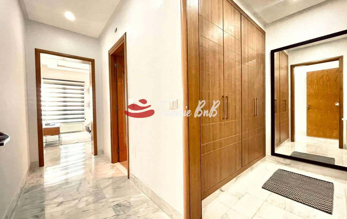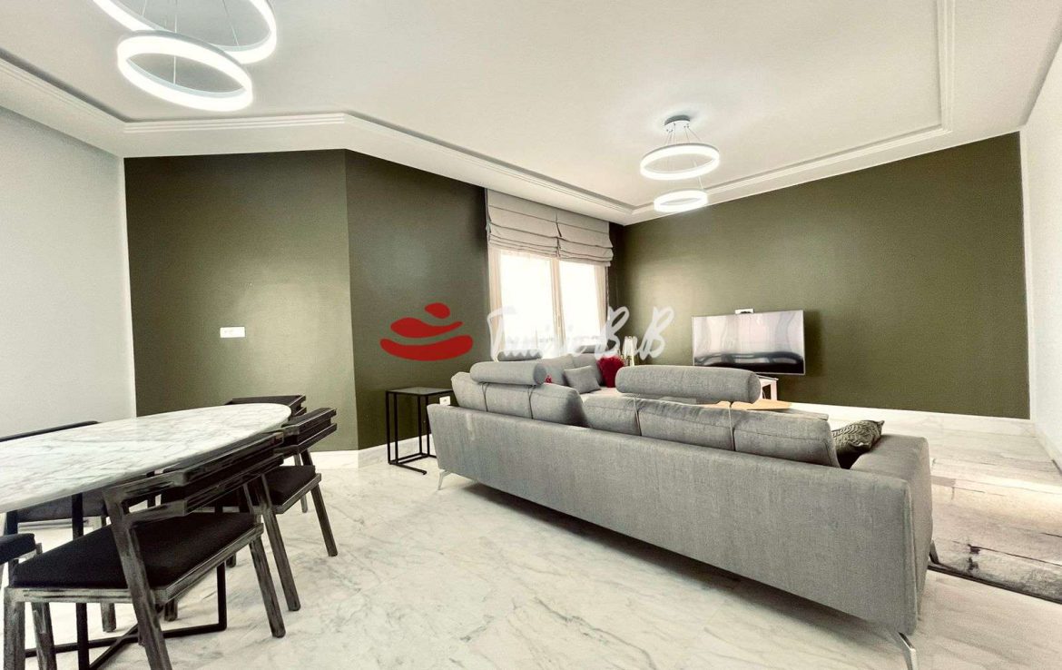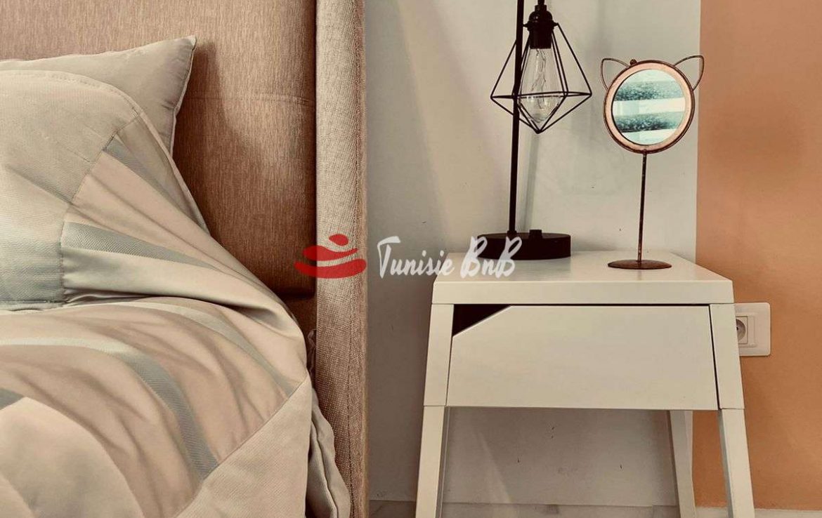 L'agence immobilière Tunisie BnB propose à la location un appartement S 3 richement meublé dans une résidence calme et sécurisée. L'appartement est d'un grand salon une salle à manger, une cuisine équipée et une salle d'eau invité. La partie nuit une suite parentale et deux chambres avec salle de bain commune. Une place parking est disponible au sous sol.