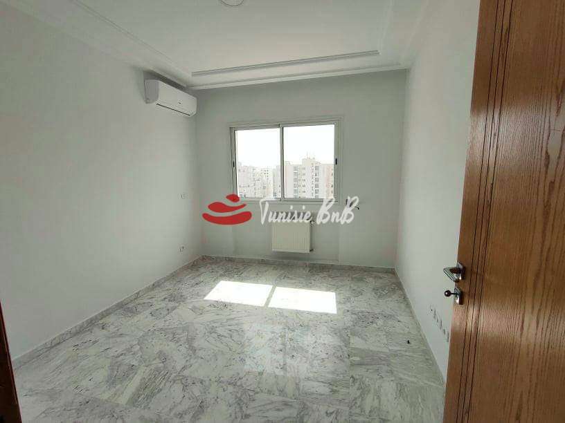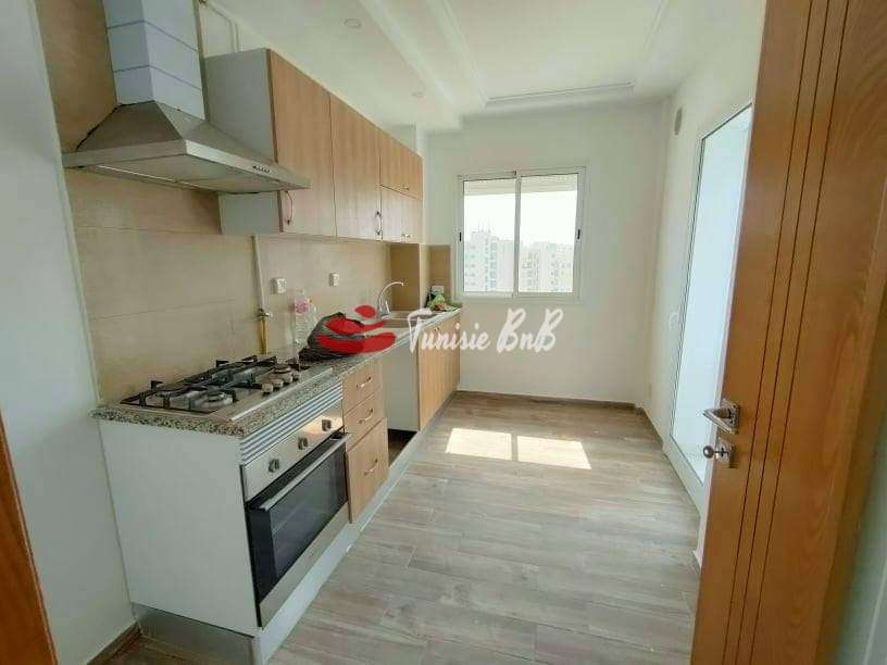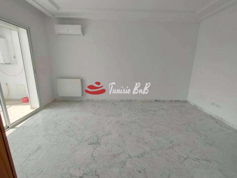 L'agence immobilière Tunisie BNB vous propose à la location un bel appartement avec terrasse composé d'un salon , une cuisine équipée , une salle d'eau , deux chambres à coucher et une salle de bain . Une place de parking au sous-sol est disponible