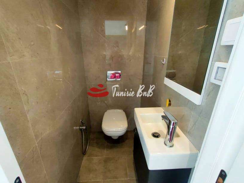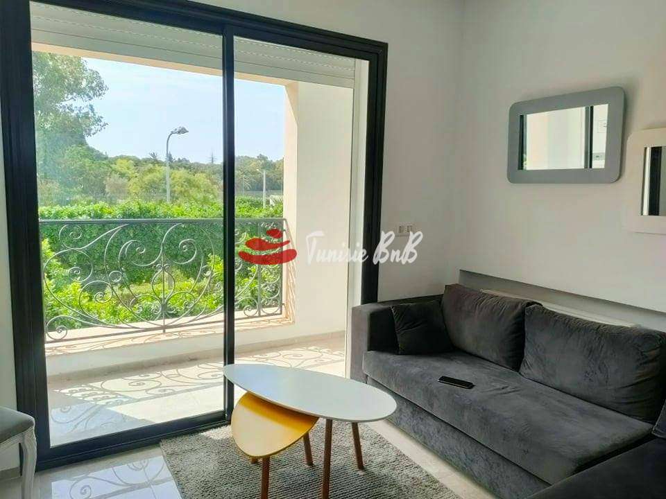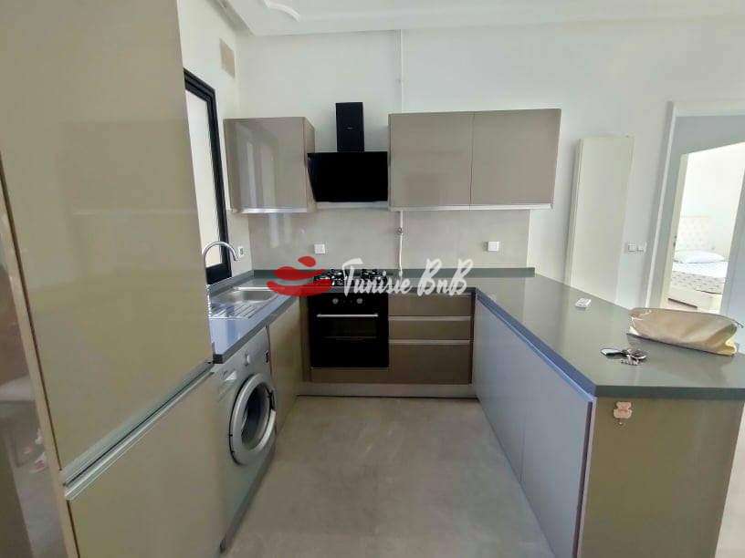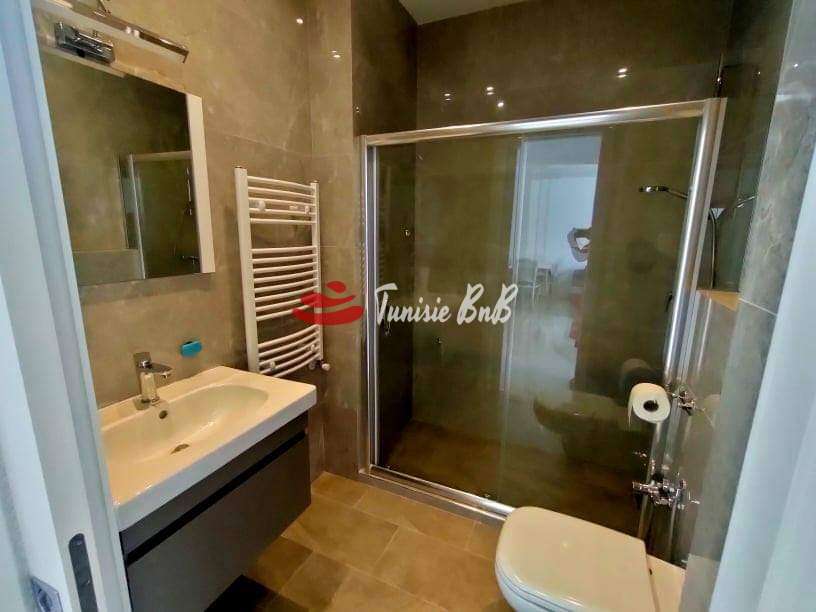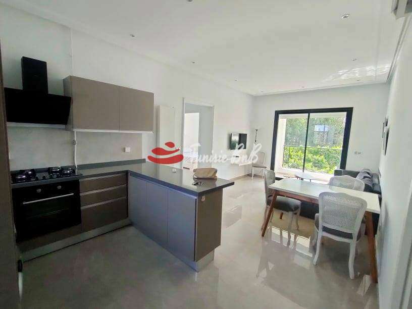 L'agence immobilière Tunisie bnb vous propose à la location un bel appartement meublé dans une résidence sécurisée et calme à la Marsa. Il est composé d'un salon , une salle d'eau, une cuisine américaine équipée , deux chambres à coucher avec une salle de bain commune et une terrasse. Une place de parking au sous-sol est disponible