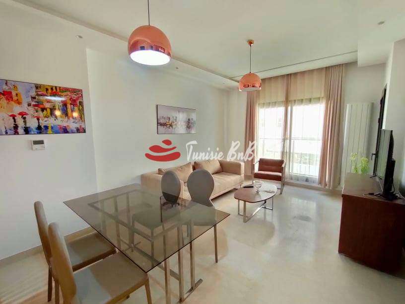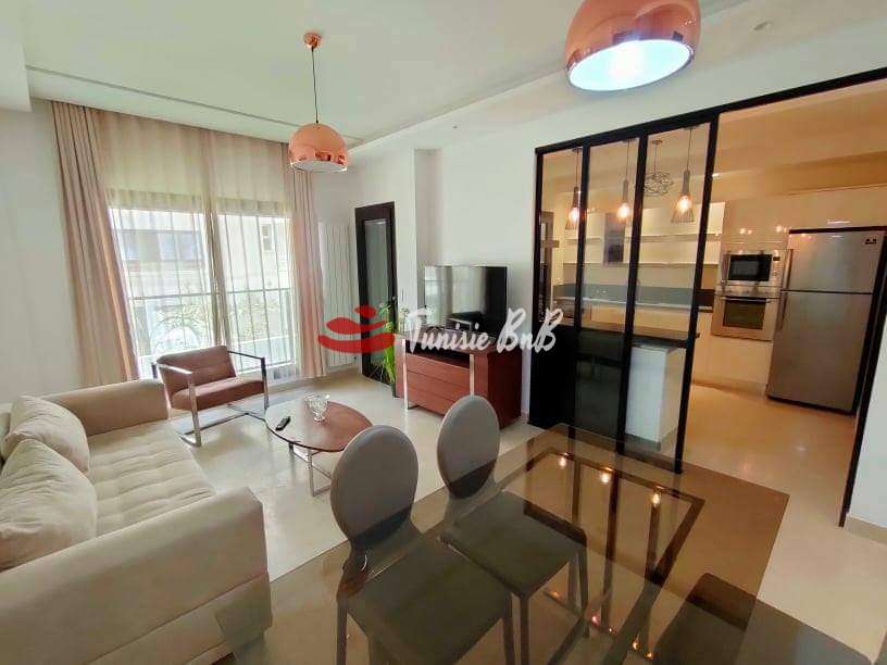 L'agence immobilière Tunisie bnb vous propose à la location un bel appartement meublé au lac 2. Il est composé d'un salon , salle à manger , une cuisine équipée avec séchoir ,une salle d'eau , deux chambres à coucher avec une salle de bain commune. Une place de parking et un cellier au sous-sol sont disponible