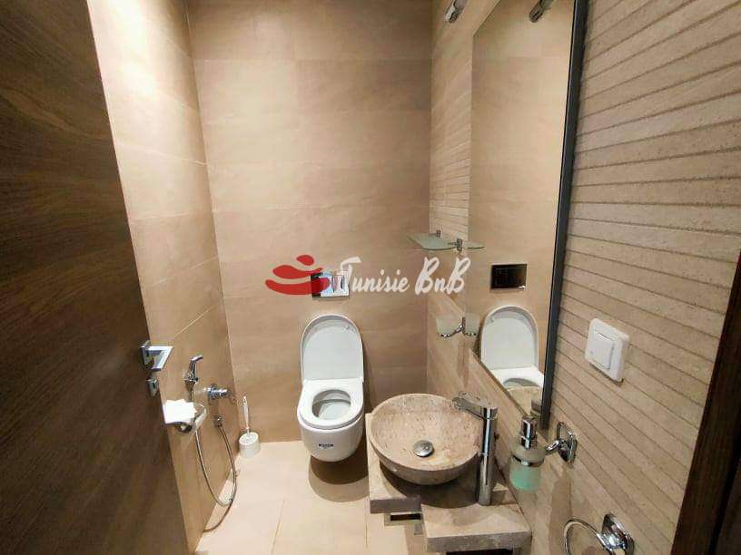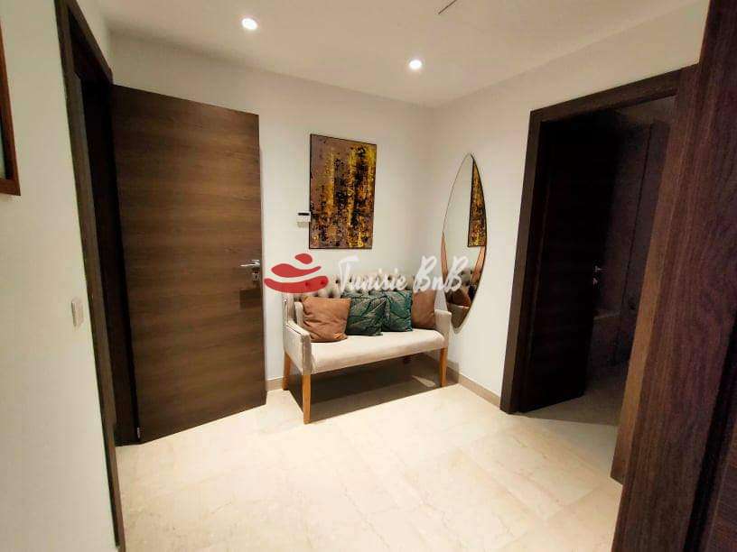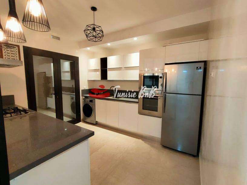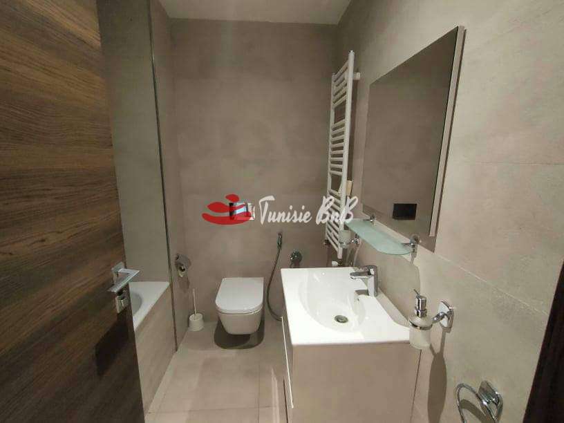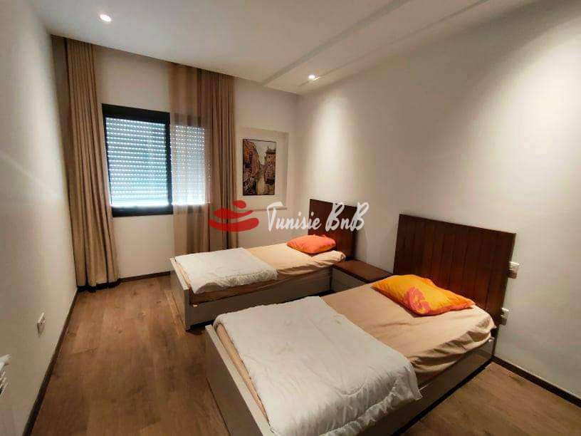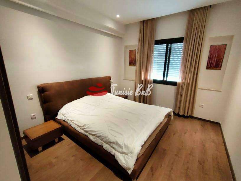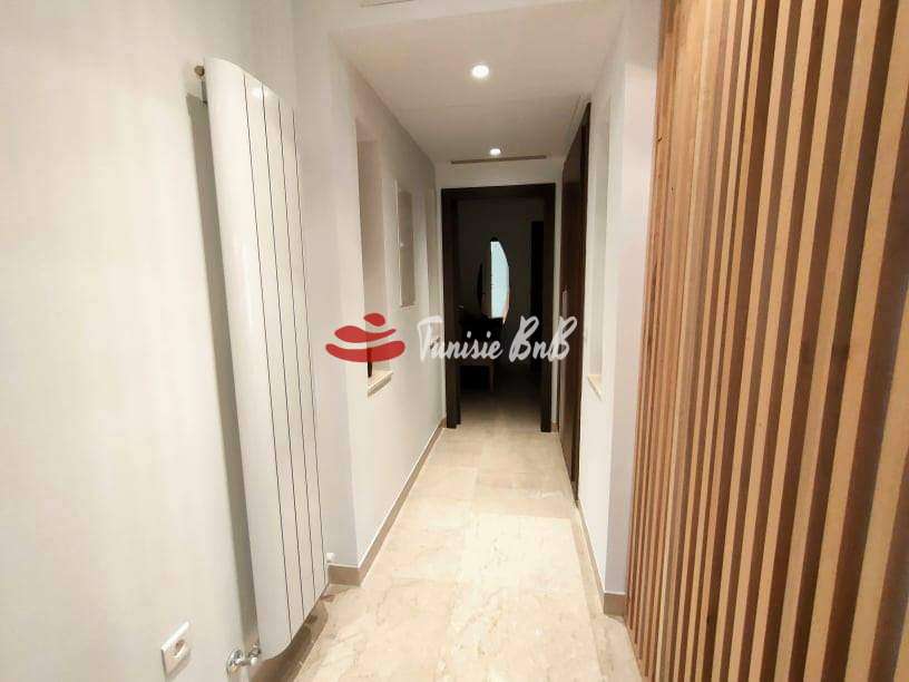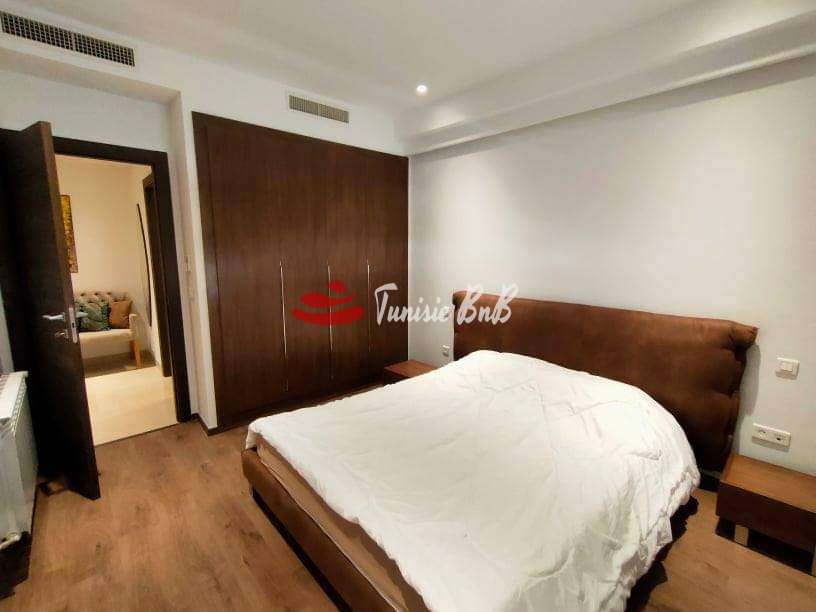 L'agence immobiliére Tunisie BnB propose à la location un appartement s+2 dans une résidence calme et sécurisée aux Jardins de Carthage .