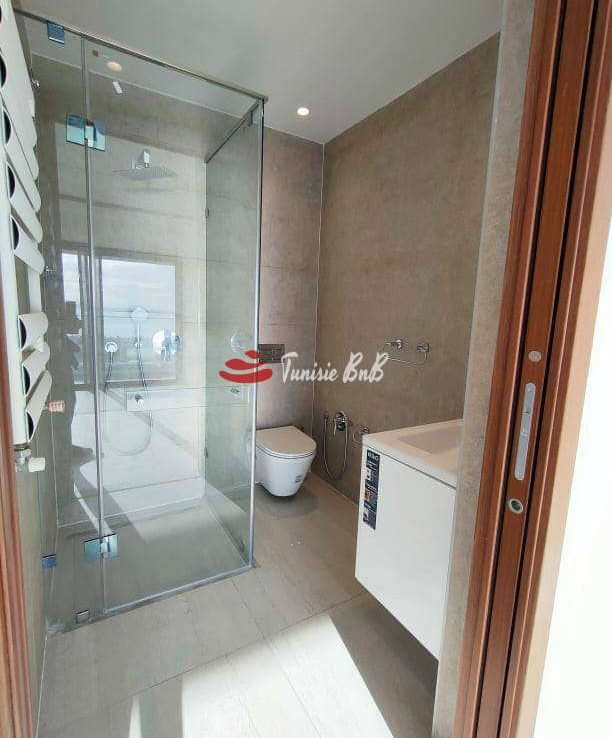 l'agence immobilière Tunisie BnB vous propose à la location deux duplex jamais habité à la Soukra dans une toute petite résidence bien gardée composé d'un grand salon lumineux grâce à ses larges ouvertures , salle à manger , une salle d'eau pour invité . à l'étage , trois suites avec une belle terrasse . abri pour trois voiture pour chaque duplex .