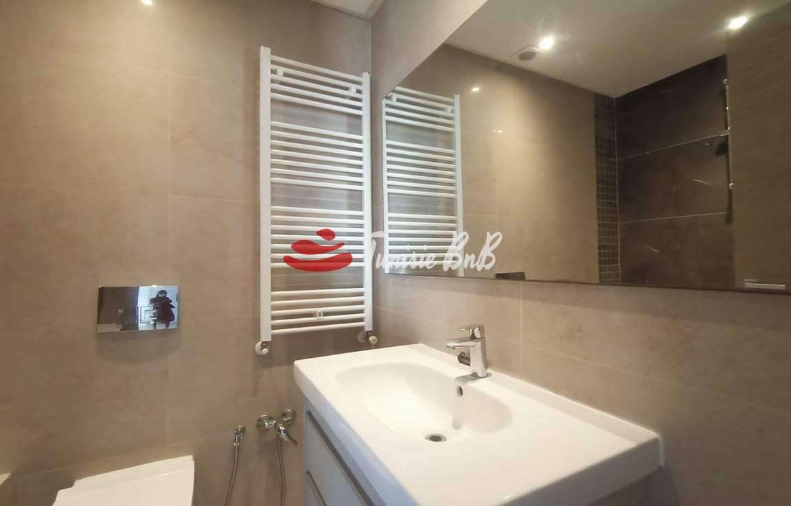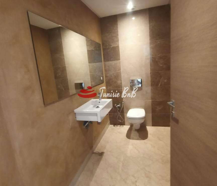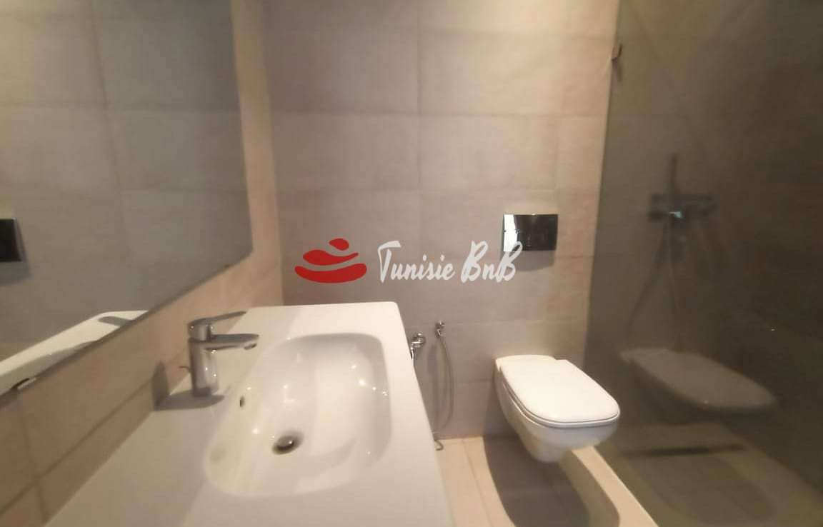 L'agence immobilière Tunisie bnb vous propose à la location un appartement dans une résidence sécurisée et calme. Il est composé d'un salon , salle à manger , une salle d'eau , une cuisine équipée , deux chambres à coucher avec une salle de bain commune et une suite parentale. Une place de parking au sous-sol est disponible