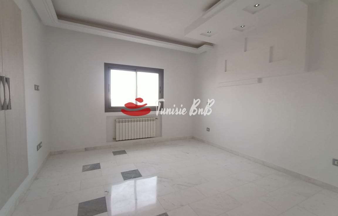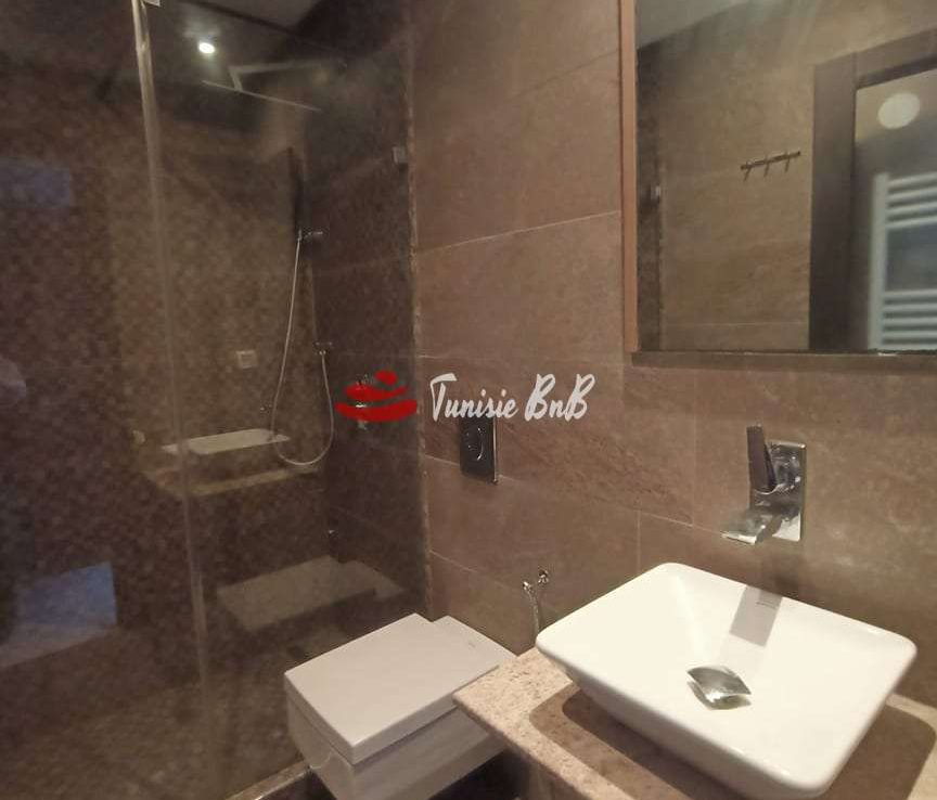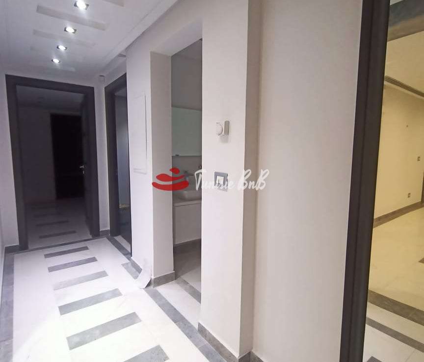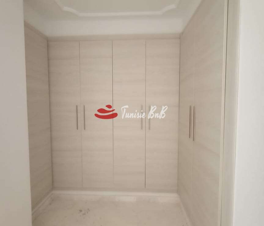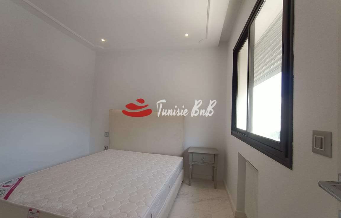 l'agence immobilière Tunisie bnb vous propose à la location un bel appartement dans une résidence calme et sécurisée. il est composé d'un salon , salle à manger , une cuisine équipée , une salle d'eau , deux chambres à coucher , une salle de bain et une suite parentale. une place de parking est disponible