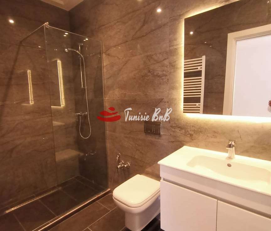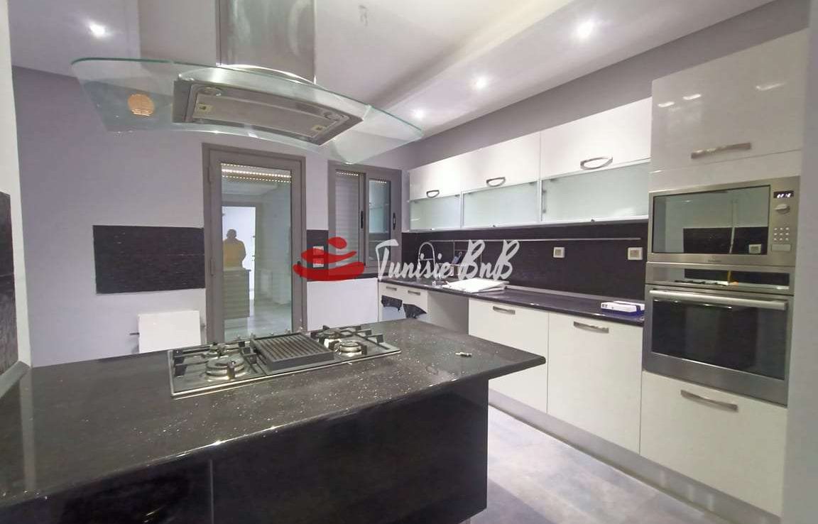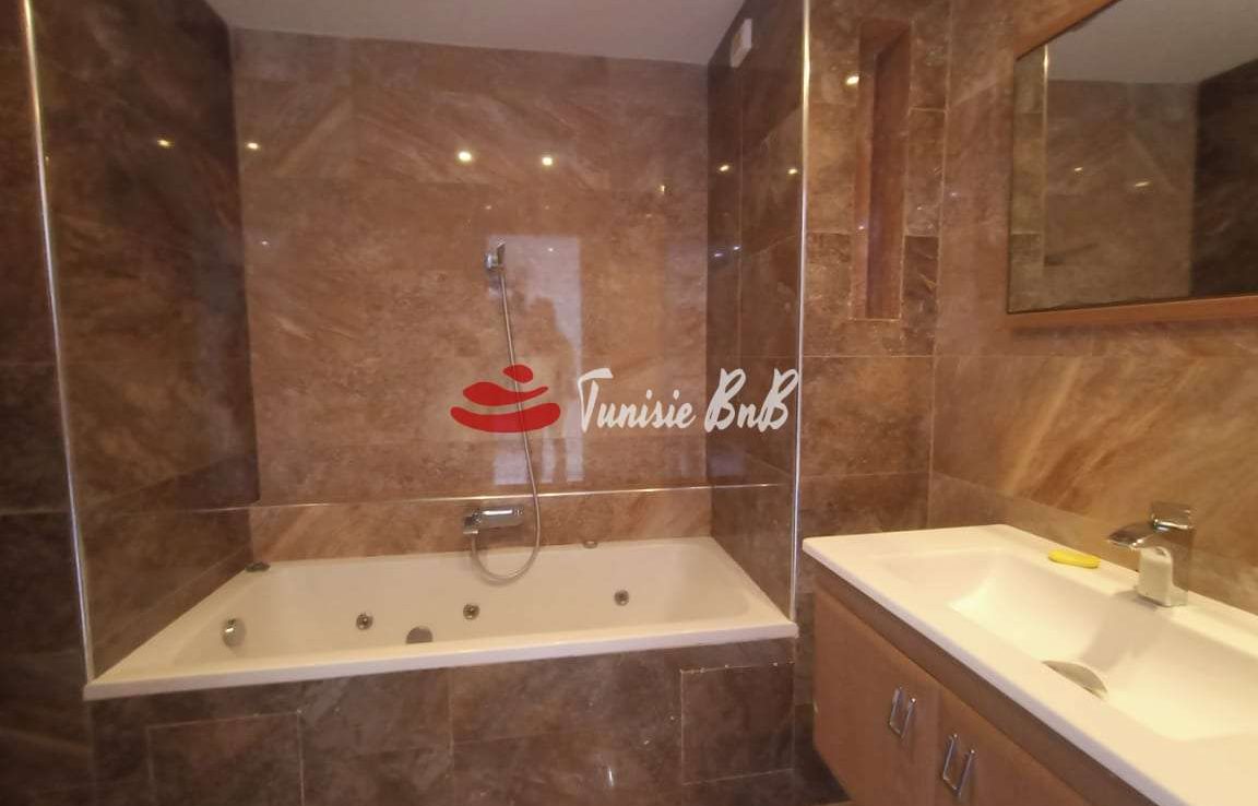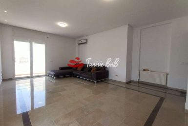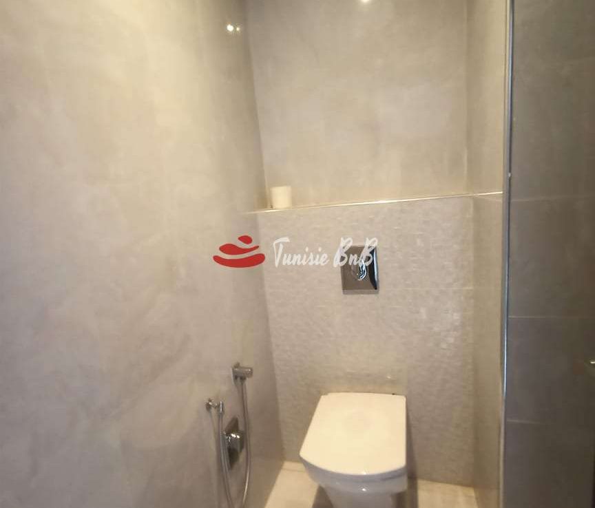 l'agence immobilière Tunisie bnb vous propose à la location un bel appartement dans une résidence calme et sécurisée. il est composé d'un salon , salle à manger , une cuisine équipée , une salle d'eau , deux chambres à coucher , une salle de bain et une suite parentale. une place de parking est disponible