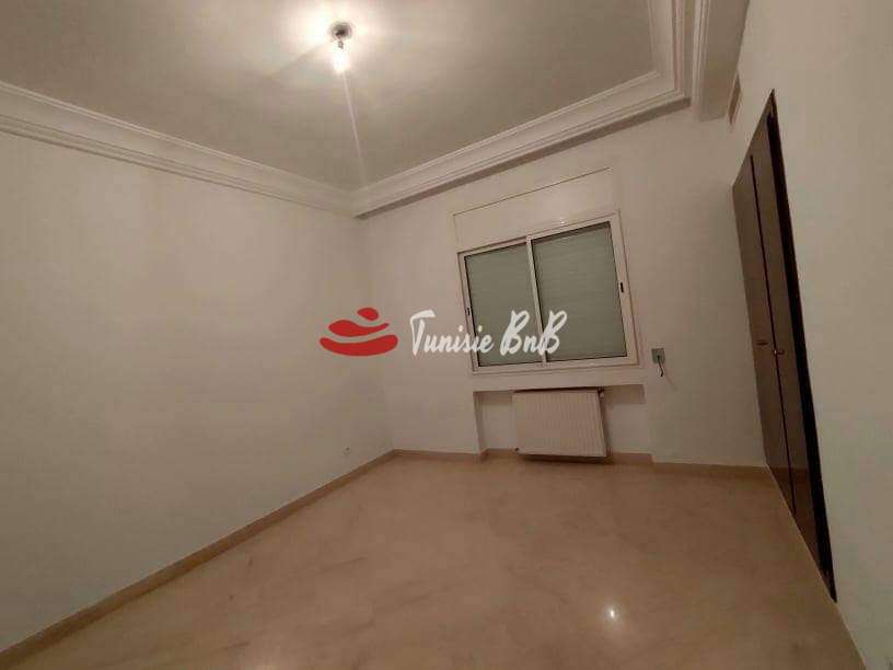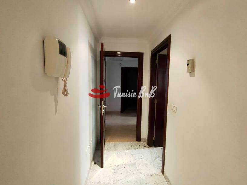 L'agence immobilière Tunisie bnb vous propose à la location un bel appartement dans une résidence sécurisée et calme. Il est composé d'un salon, salle à manger , une cuisine équipée avec séchoir, une chambre de service , deux chambres à coucher avec une salle de bain commune et une suite parentale. Une place de parking au sous-sol est disponible