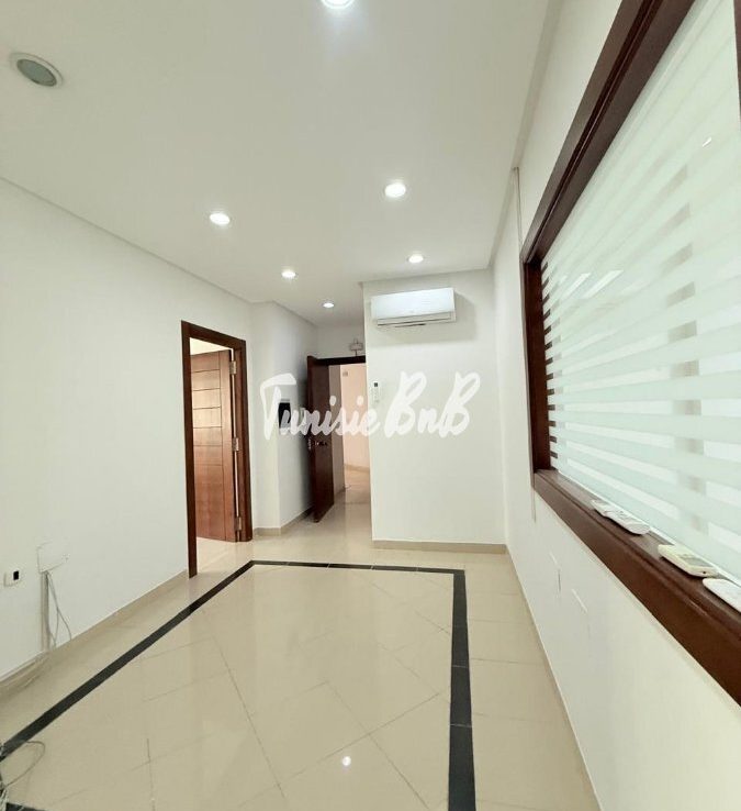 l'agence immobilière Tunisie BnB propose à la location un bureau haut standing dans un immeuble à usage professionnel. il se compose d'un grand open space, 3 bureaux,deux bloc sanitaires homme/femme et une kitchenette .