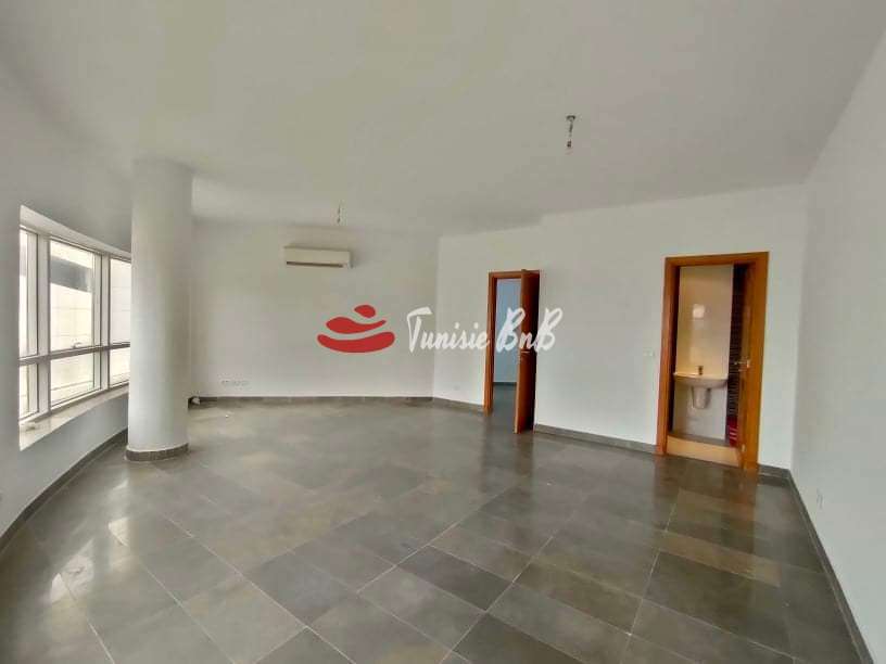 L'agence immobilière Tunisie bnb vous propose à la location un bureau de 150 m2 au lac 2 . Il est composé d'un accueil , une salle d'eau , une kitchenette , un open space et un bureau de direction avec sa propre salle d'eau. Une place de parking au sous-sol est disponible