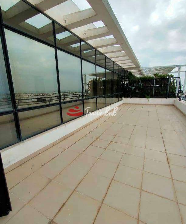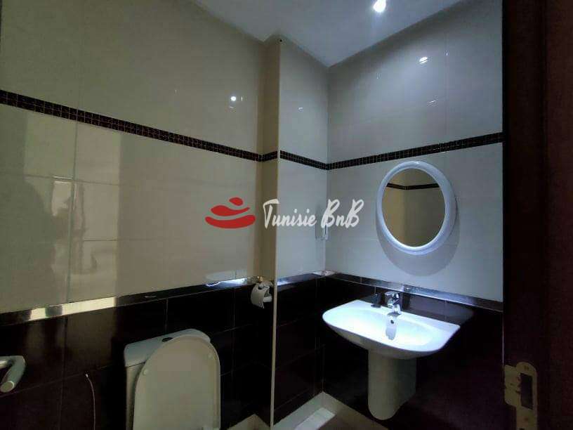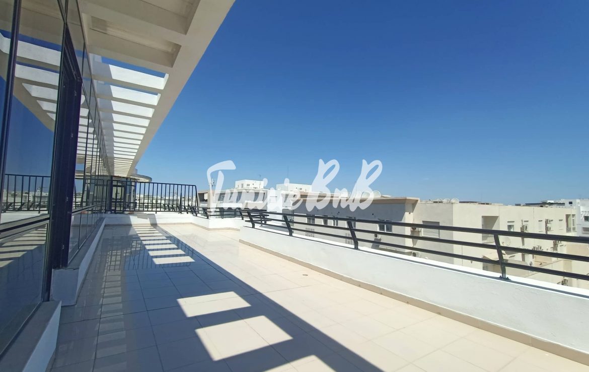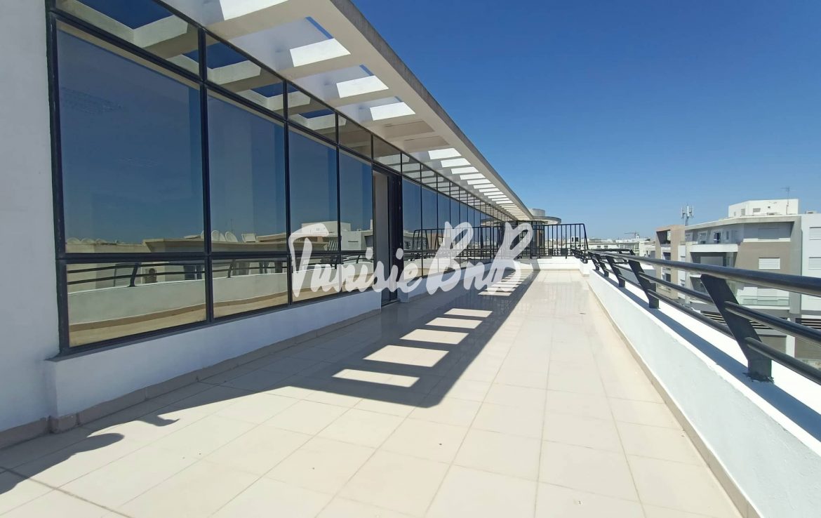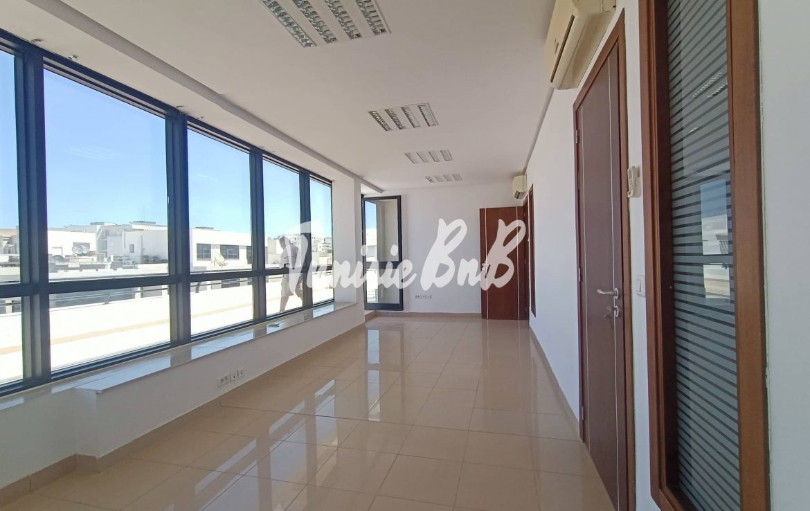 L'agence immobilière Tunisie BNB vous propose à la location un bureau de 210 m2 dans un immeuble à usage professionnel Il est composé comme suit Deux grands bureaux avec une belle terrasse , cinq autres pièces ( bureaux) , deux salles d'eau Deux places de parking au sous-sol sont disponibles