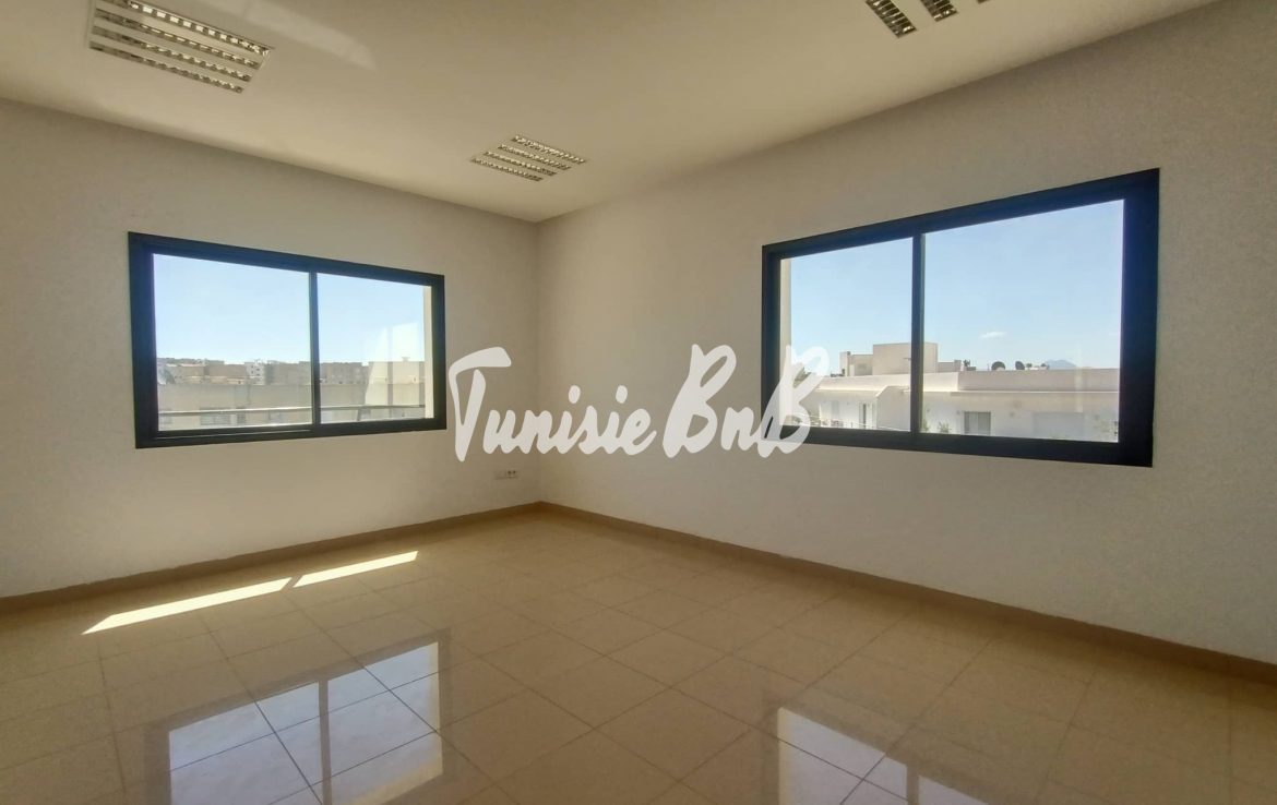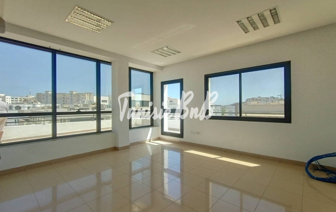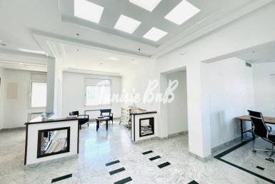 L'agence immobilière Tunisie BnB propose à la location un bureau de 220m2 dans un emplacement stratégique au lac2.Il se compose d'un grand hall d'accueil,une kitchenette,un open space,un bureau de direction, deux autres pièces et trois blocs sanitaires.