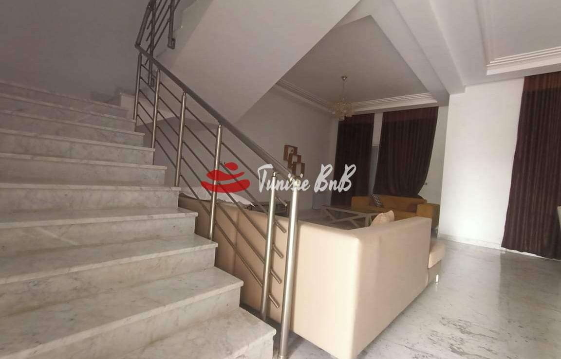 L'agence immobilière Tunisie BnB propose à la location un appartement de très haut standing au dernier étage dans une résidence calme et sécurisée.