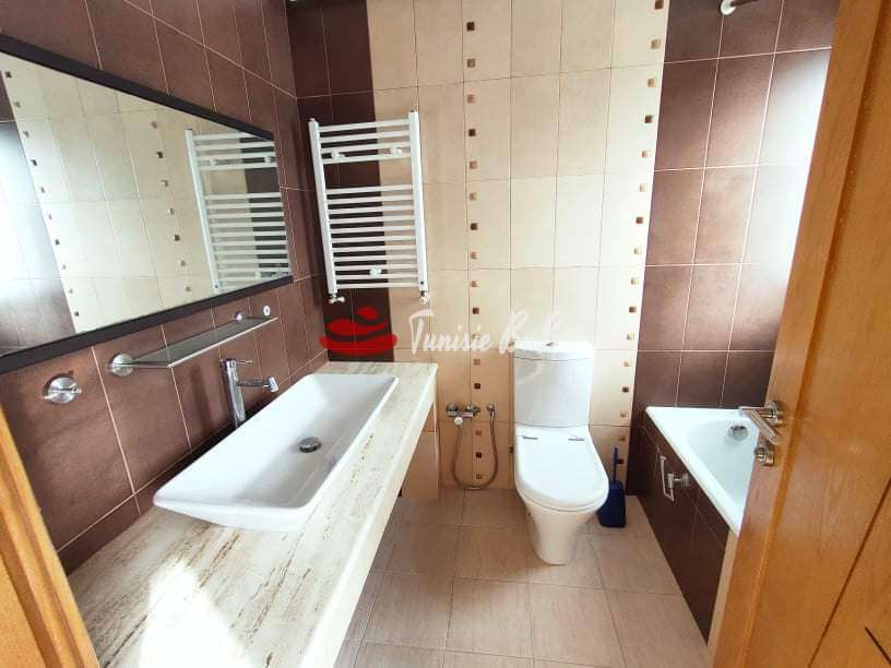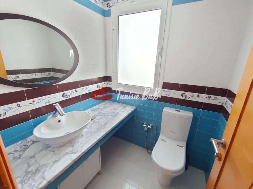 L'agence immobilière Tunisie bnb vous propose à la location un étage de villa dans un quartier résidentiel et calme. Il est composé d'un salon , salle à manger avec terrasse , une cuisine équipée avec balcon , une salle d'eau , deux chambres à coucher avec une salle de bain commune et une suite parentale avec terrasse . Abri pour une voiture