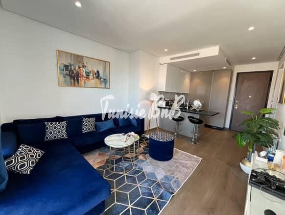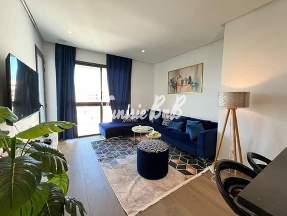 L'agence immobilière Tunisie BnB propose à la location un appartement S1 richement meublé dans une résidence calme et sécurisée au lac2.