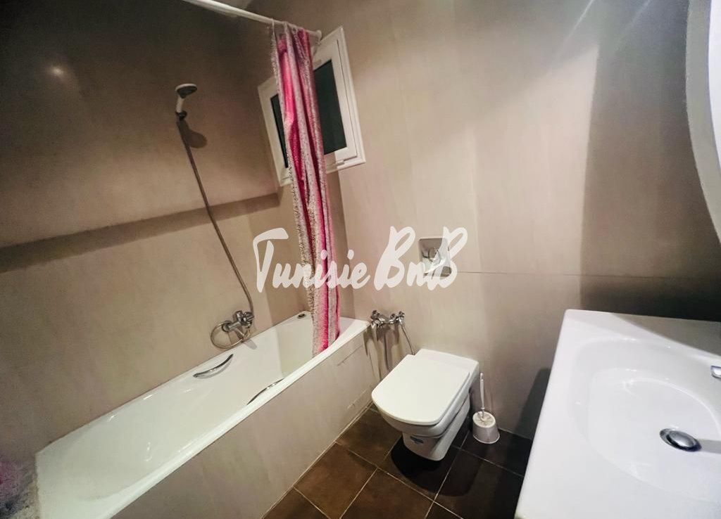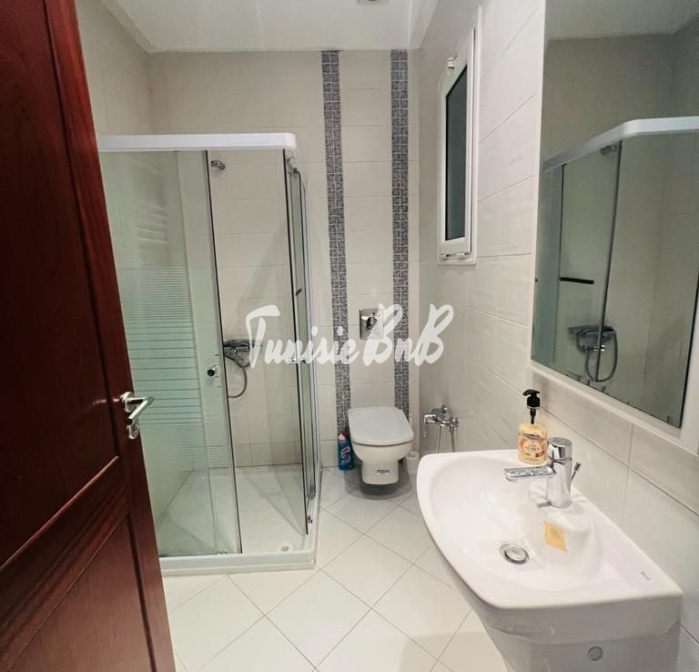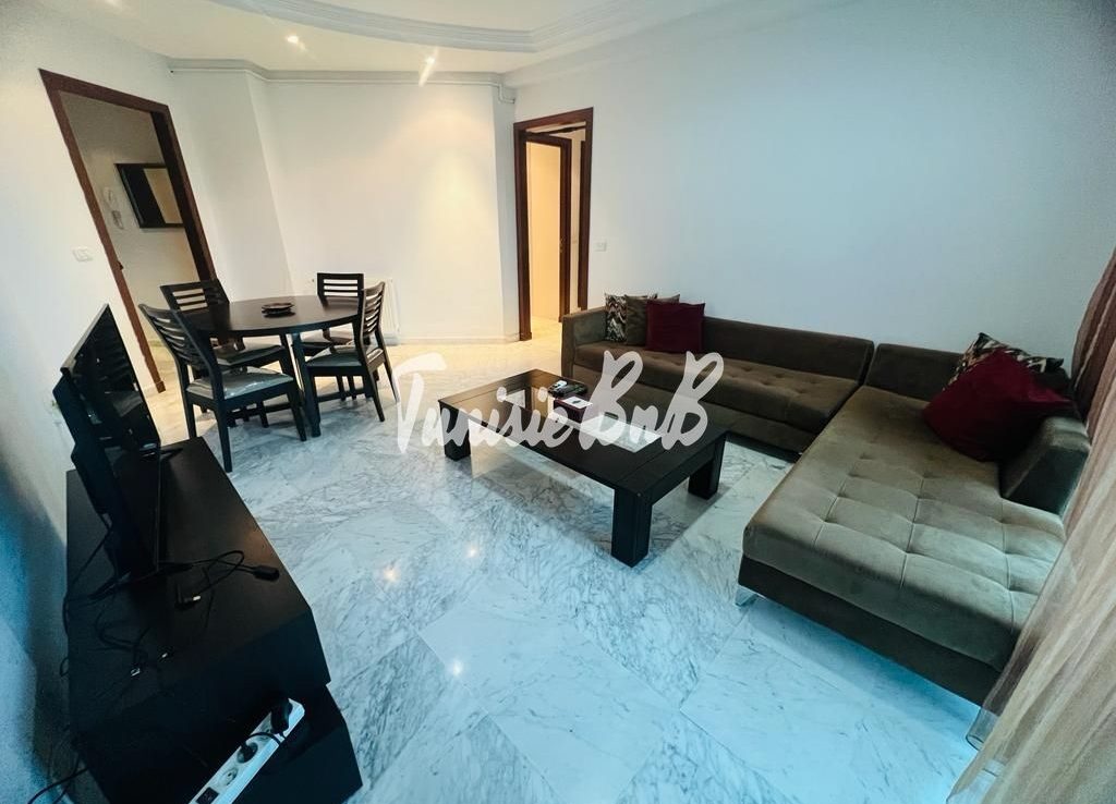 L’agence immobilière Tunisie BnB propose à la location un appartement S2 richement meublé dans une résidence calme et sécurisée au lac2. Il se compose d’un grand salon une salle à manger, une cuisine équipée, une salle d’eau invité, une suite parentale et une chambre avec salle de bain. Une place parking est disponible au sous sol.