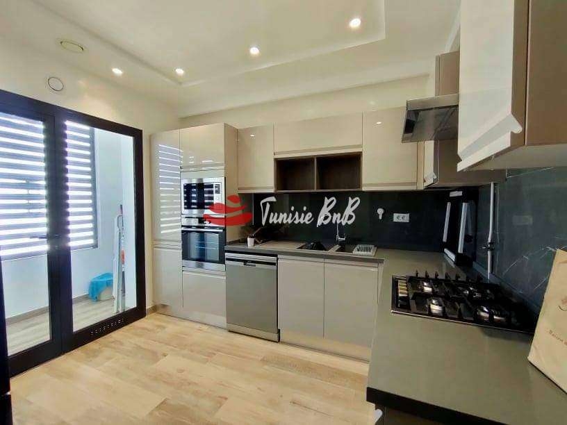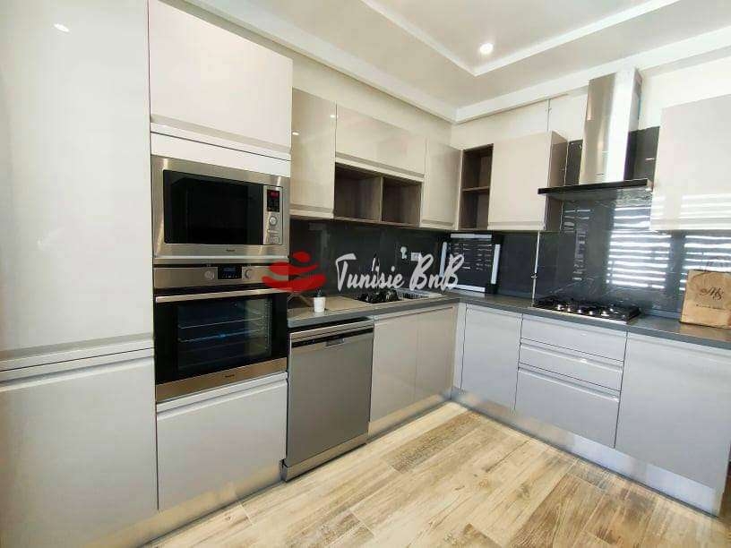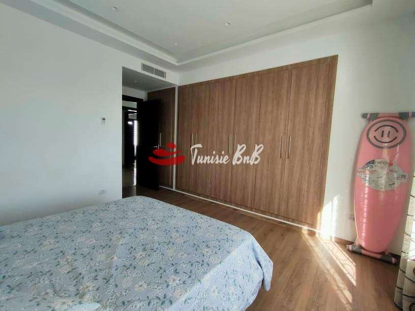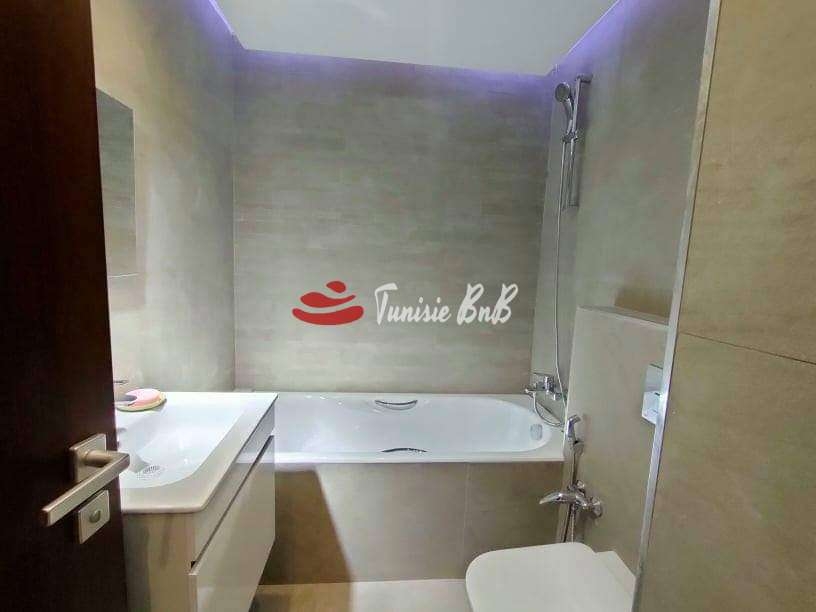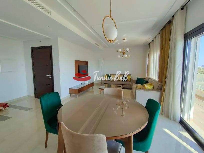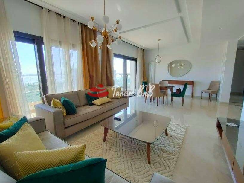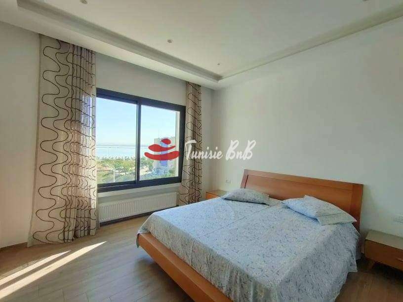 L'agence immobilière Tunisie BNB vous propose en exclusivité un bel appartement meublé jamais habité vue sur lac Il est composé d'un salon , salle à manger avec une belle terrasse offrant une vue imprenable sur le lac , une salle d'eau , une cuisine équipée avec séchoir et deux suites Une place de parking et un cellier sont disponibles au sous-sol