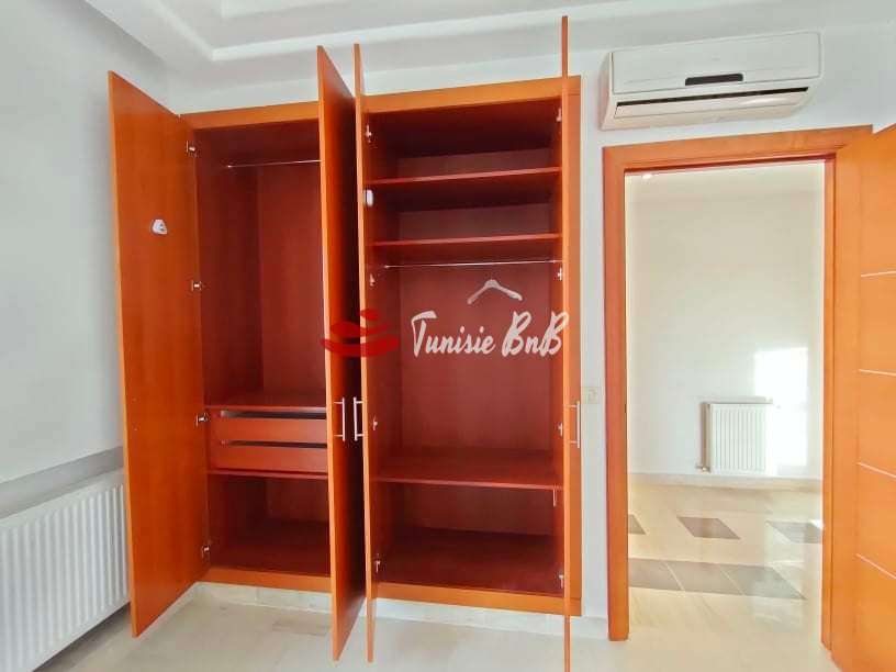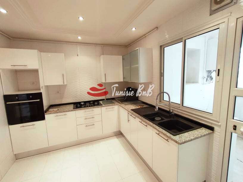 L'agence immobilière Tunisie bnb vous propose à la vente un bel appartement dans une résidence sécurisée et calme. Il est composé d'un salon , salle à manger avec balcon , une cuisine équipée avec séchoir , deux chambres à coucher avec dressings et une salle de bain commune. Deux places de parking privé sont disponibles
