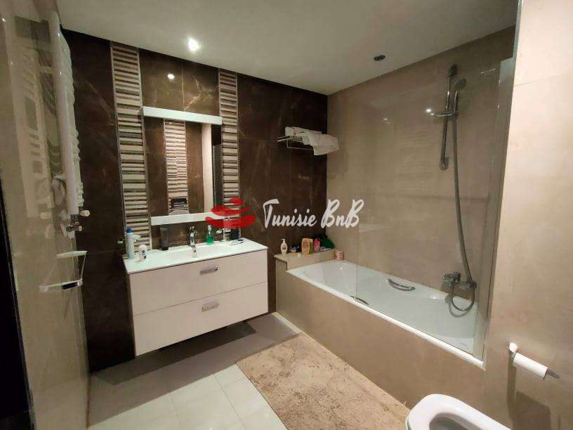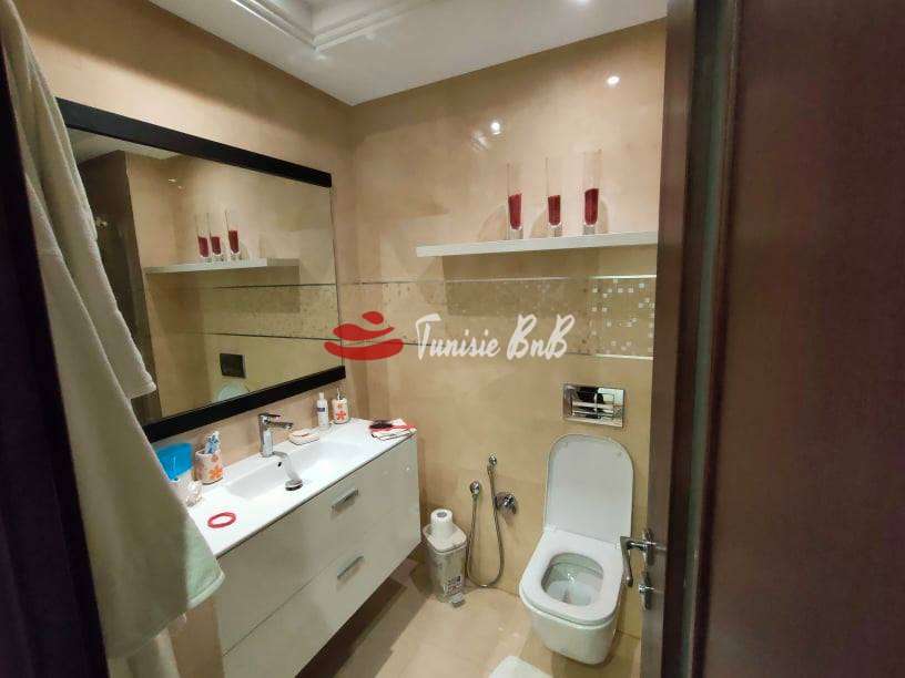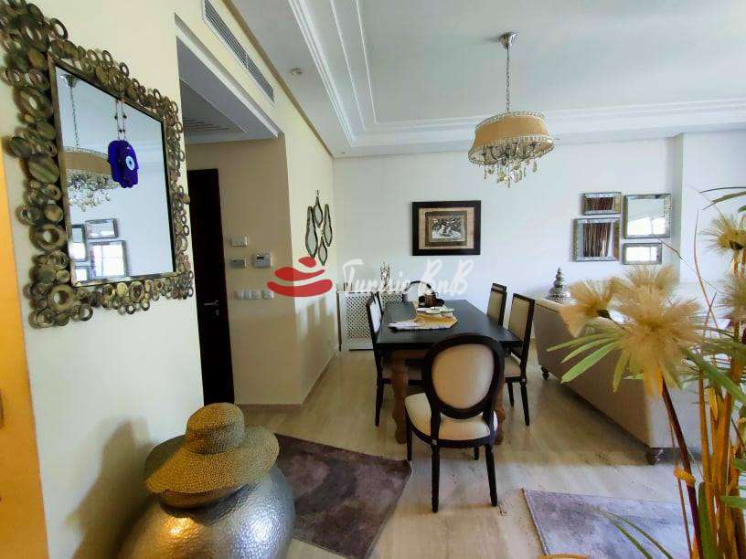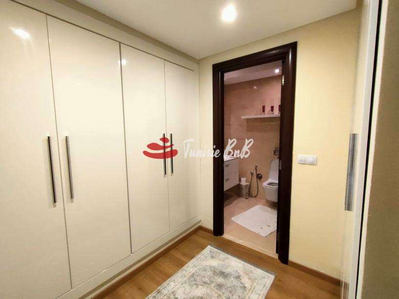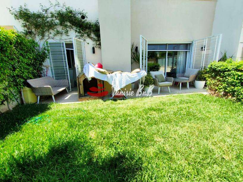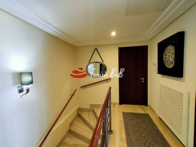 l'agence immobilière Tunisie BnB vous propose à la vente un duplex haut standing aux jardins de Carthage dans une petite résidence sécurisée et calme . Il est composé d'un grand salon , salle à manger qui donne sur le jardin , une salle d'eau invité , une cuisine équipée avec séchoir. à l'étage , deux chambres à coucher avec dressings , une salle de bain commune et une suite parentale . Au sous sol , un garage privatif et deux celliers