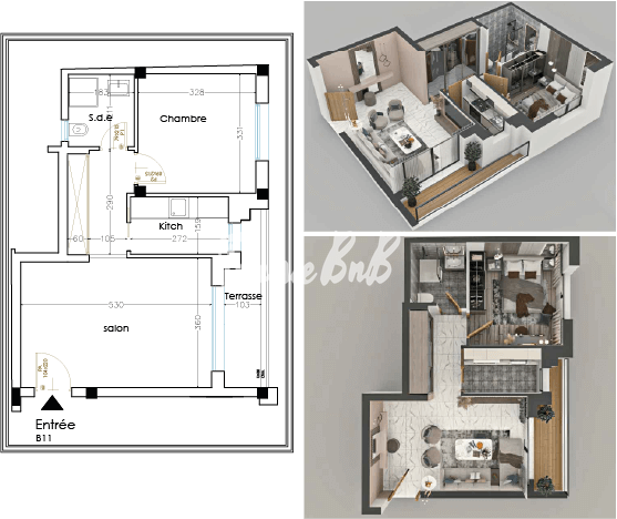 L'agence immobilière Tunisie BnB propose à la vente un appartement neuf de 69m² de chez promoteur dans un emplacement stratégique aux jardins de Carthage.