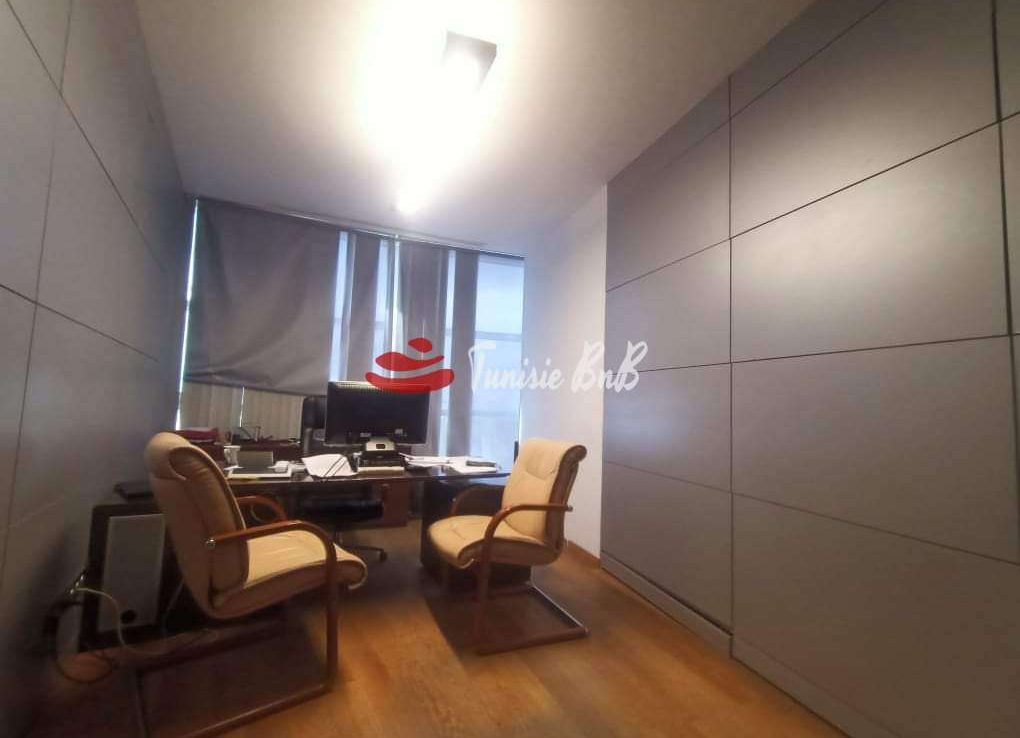 L'agence immobilière Tunisie BNB vous propose à la location un bureau dans un immeuble à usage professionnel composé d'un accueil , quatre bureaux , une salle de réunion et un open Space.
