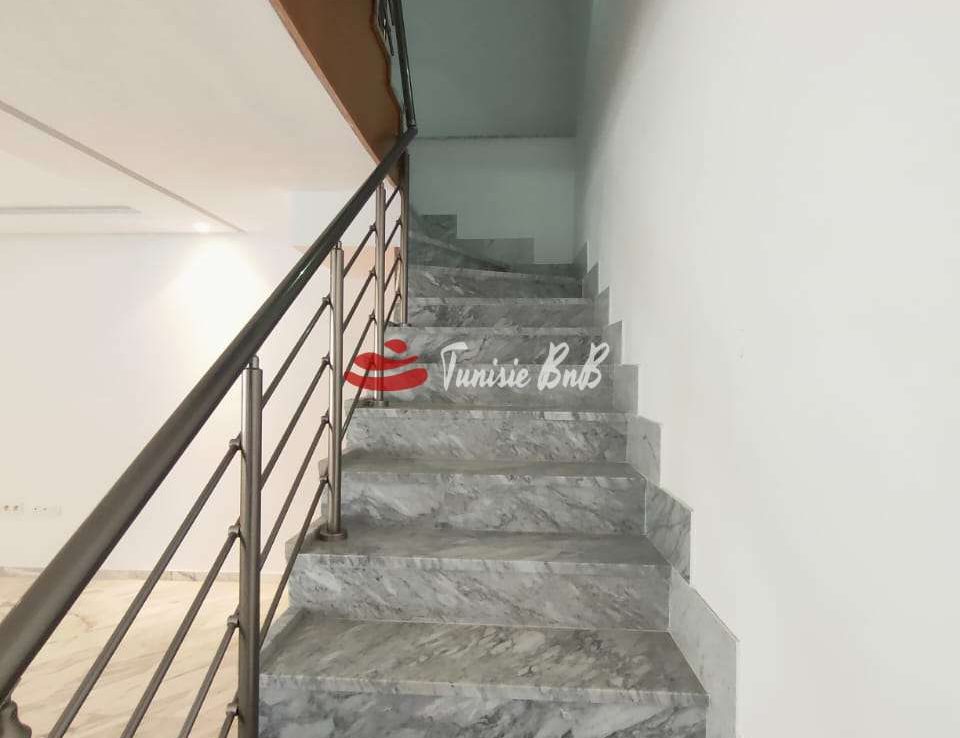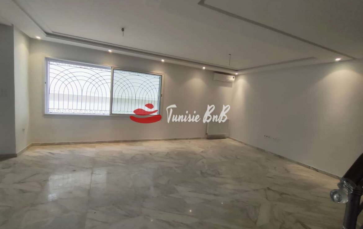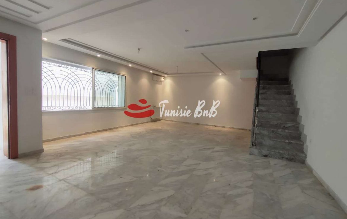 L'agence immobilière Tunisie BNB vous propose à la location un duplex dans une petite résidence Il est composé d'un salon , salle à manger , une cuisine équipée , une salle d'eau À l'étage , deux chambres à coucher , une salle de bain commune et une suite parentale Une place de parking au sous-sol est disponible