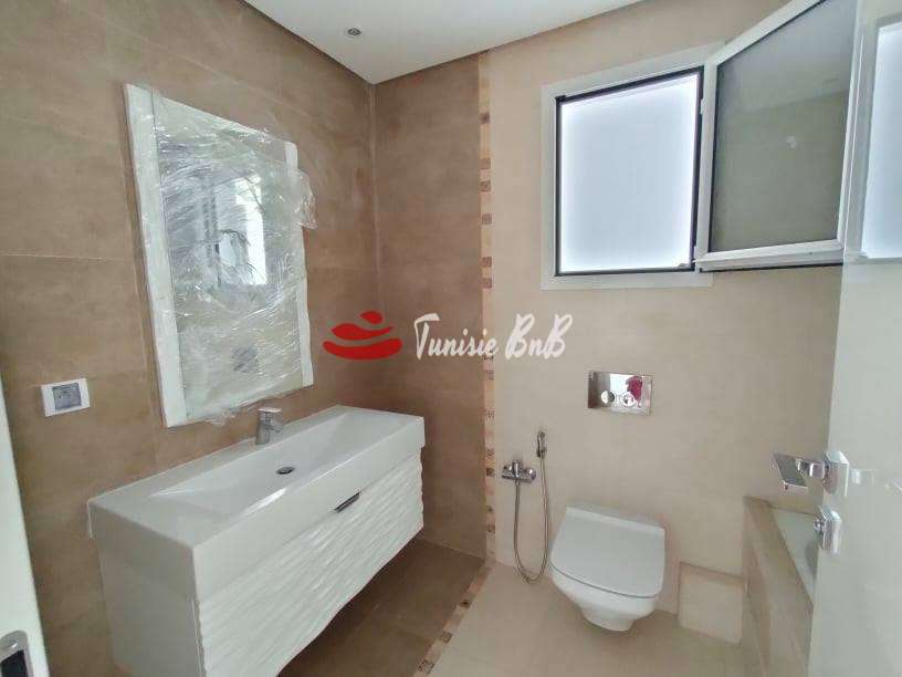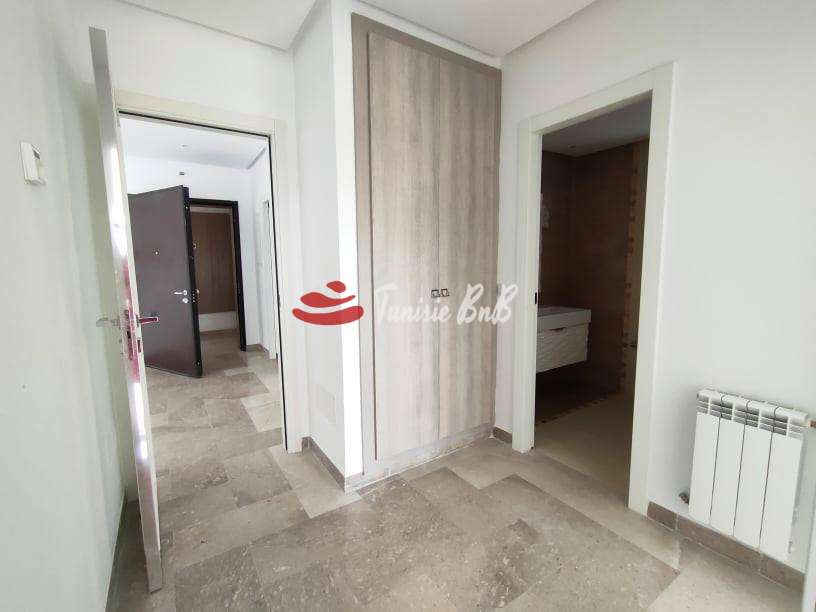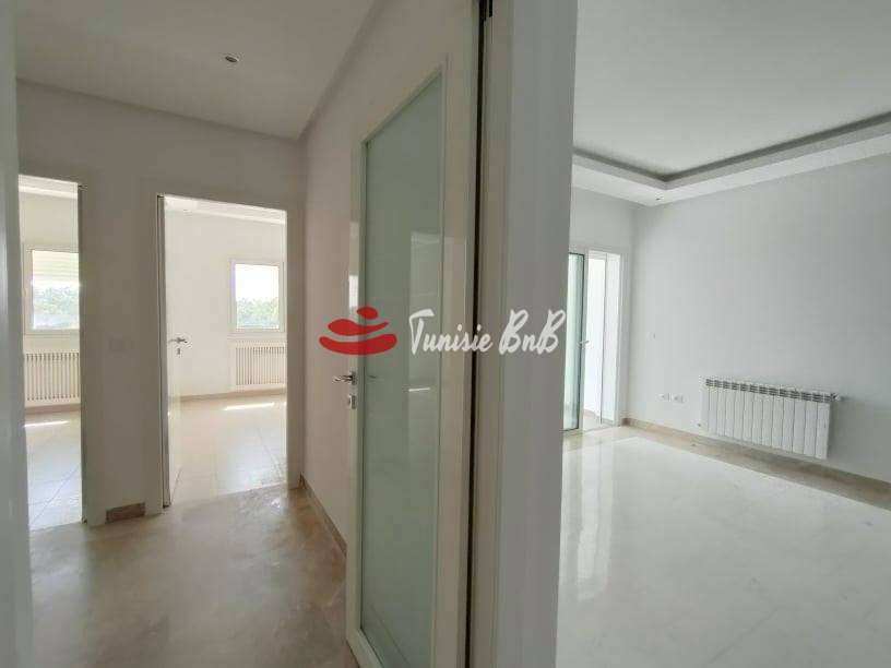 l'agence immobilière Tunisie BnB vous propose à la location un bel appartement aux jardins de Carthage dans un quartier calme et sécurisée . Il est composé d'un salon , salle à manger , une cuisine équipée avec séchoir , une salle d'eau , deux chambres à coucher avec dressings et une salle de bain . Une place de parking au sous sol est disponible