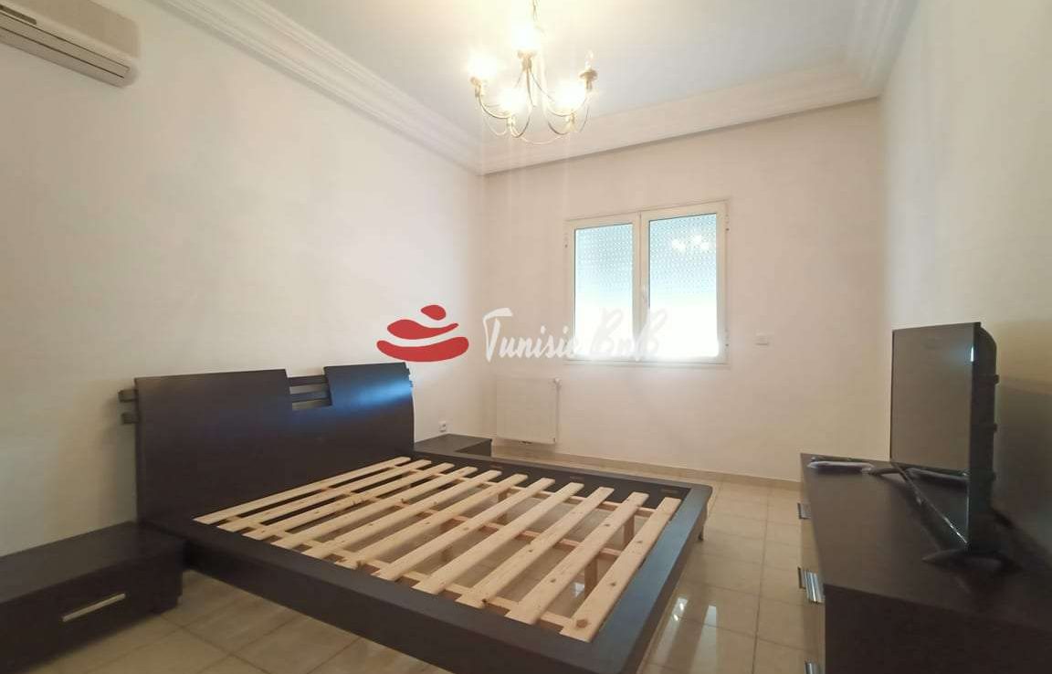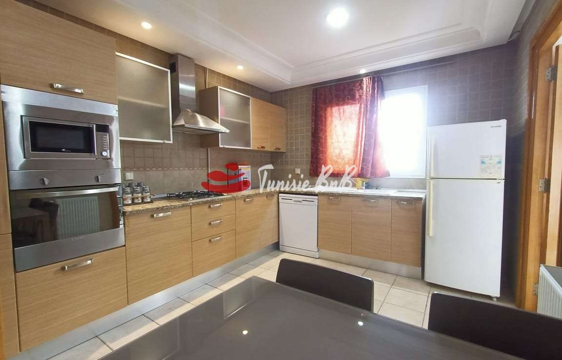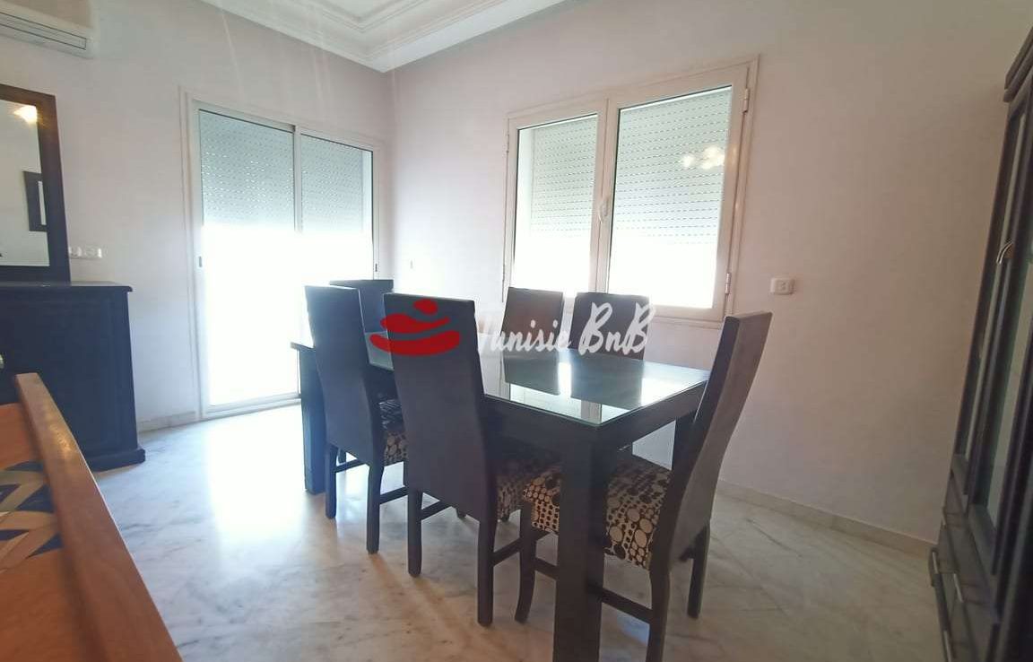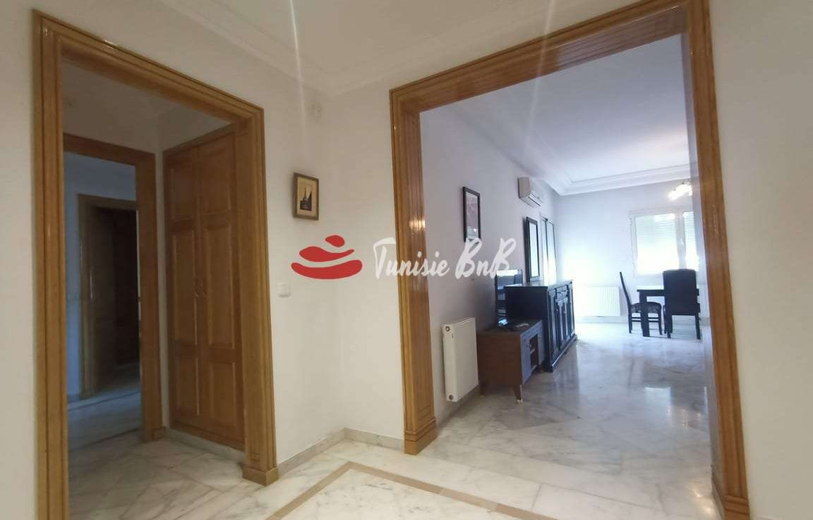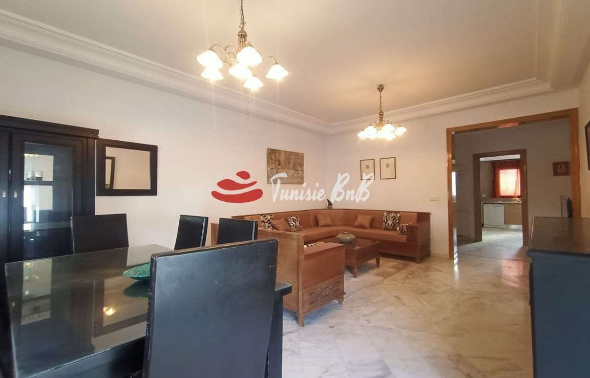 L'agence immobilière Tunisie BnB propose à la location un appartement S 3 meublé a côté de l'ambassade du Canada . L'appartement est composé d'un grand salon une salle à manger, une cuisine équipée et une salle d'eau invité. La partie nuit comporte une suite parentale et deux chambres avec salle de bain commune. Une place parking est disponible au sous sol