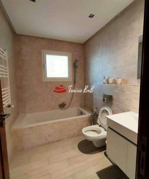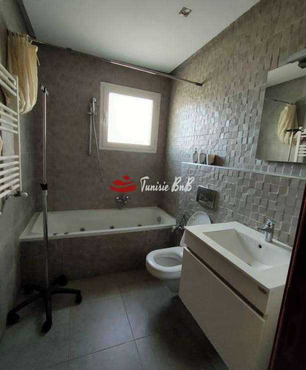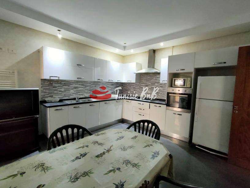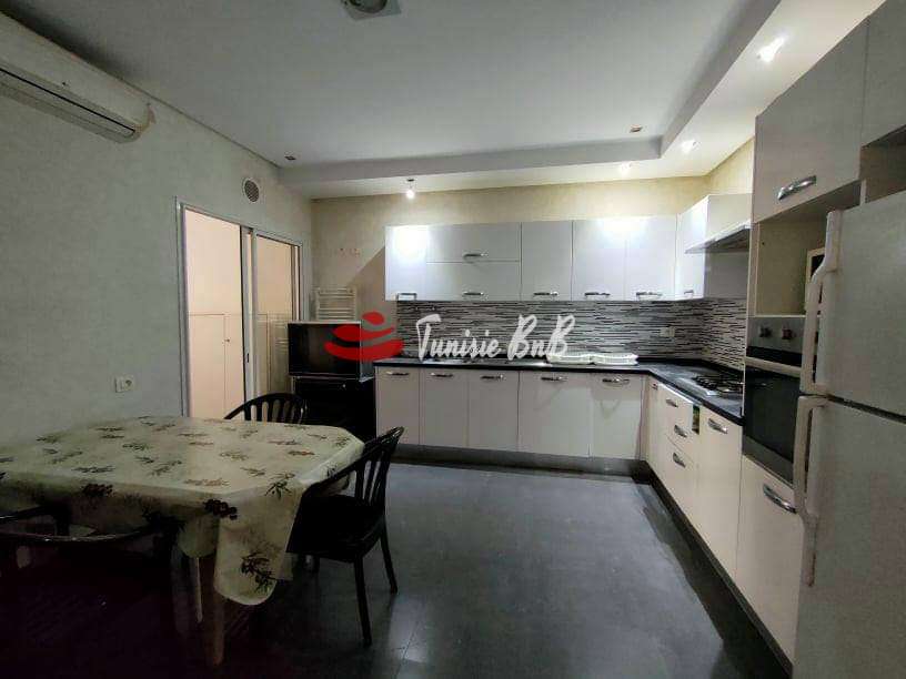 L'agence immobilière Tunisie BNB vous propose à la vente un appartement au rez de chaussée dans une résidence calme et sécurisée composé d'un salon avec terrasse , un séjour , une cuisine équipée avec séchoir , une salle de bain , deux chambres à coucher et une suite parentale. La terrasse fait le tour de l'appartement , une place de parking au sous-sol est disponible.
