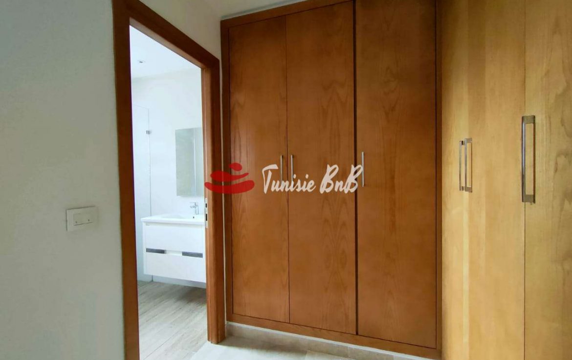 L'agence immobilière Tunisie BNB vous propose à la location un bel appartement aux jardins de Carthage dans une résidence sécurisée et calme Il est composé d'un salon avec balcon , une cuisine équipée avec séchoir , une suite parentale , une chambre à coucher et une salle de bain Une place de parking au sous-sol est disponible