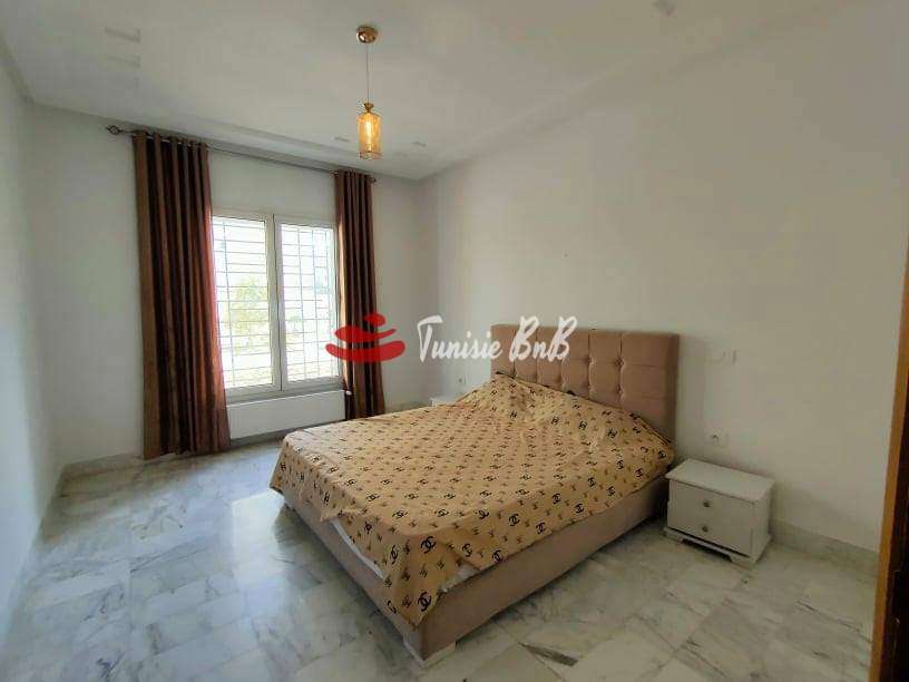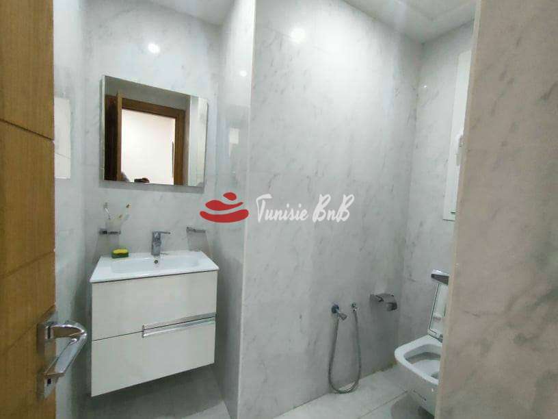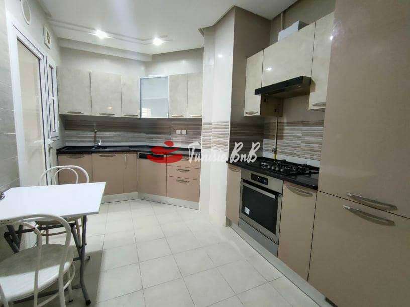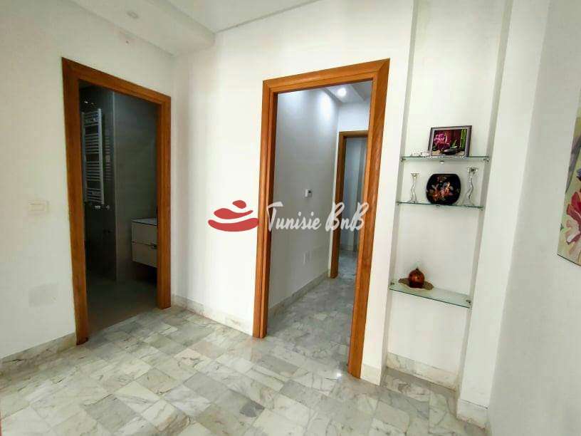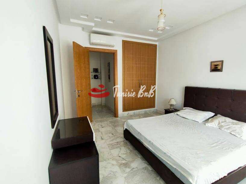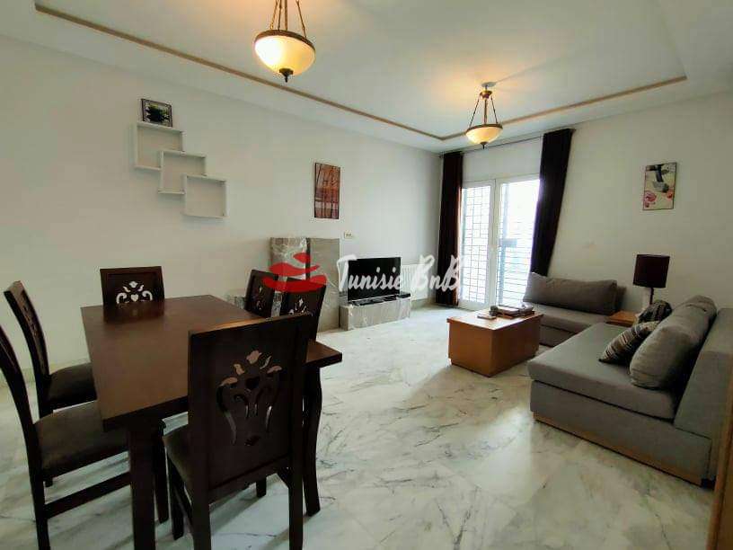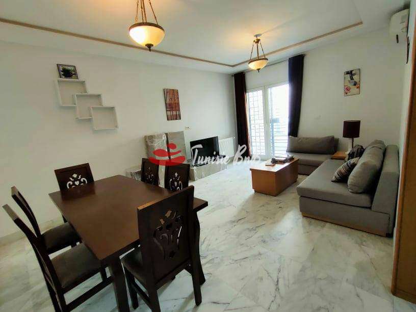 L'agence immobilière Tunisie BNB vous propose à la location un bel appartement meublé avec une place de parking au sous-sol. Il est composé d'un salon, salle à manger , une cuisine équipée avec séchoir , une salle d'eau , deux chambres à coucher avec dressings et une salle de bain.