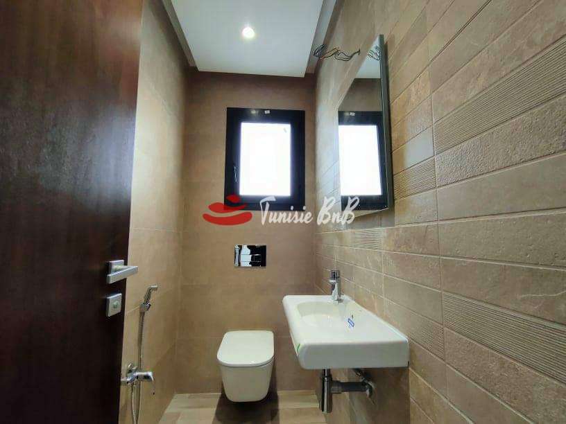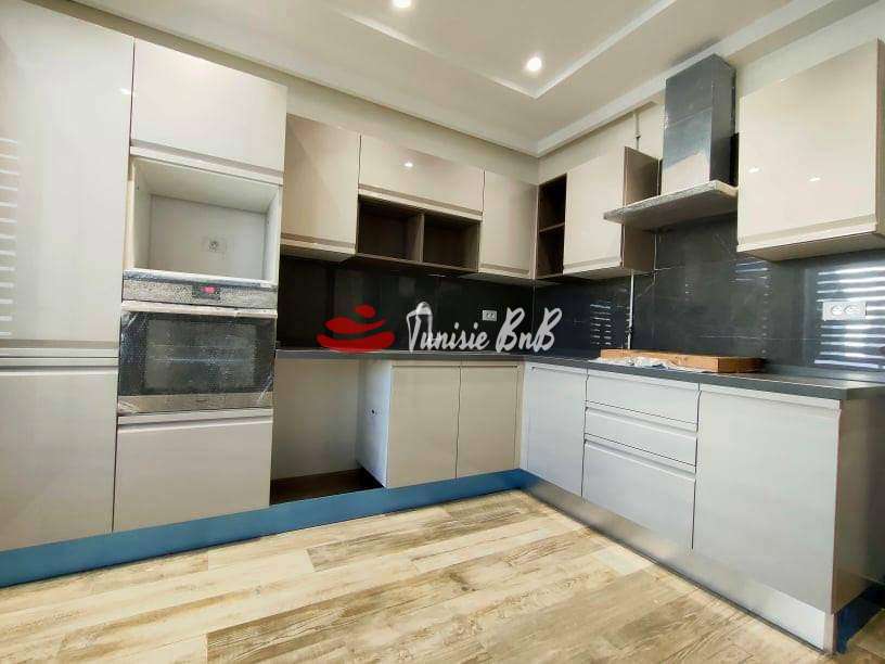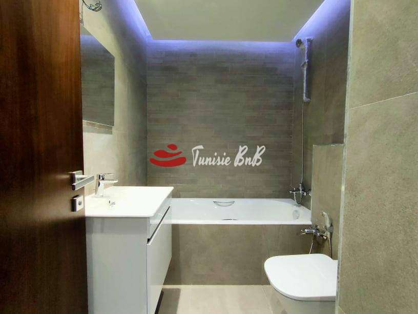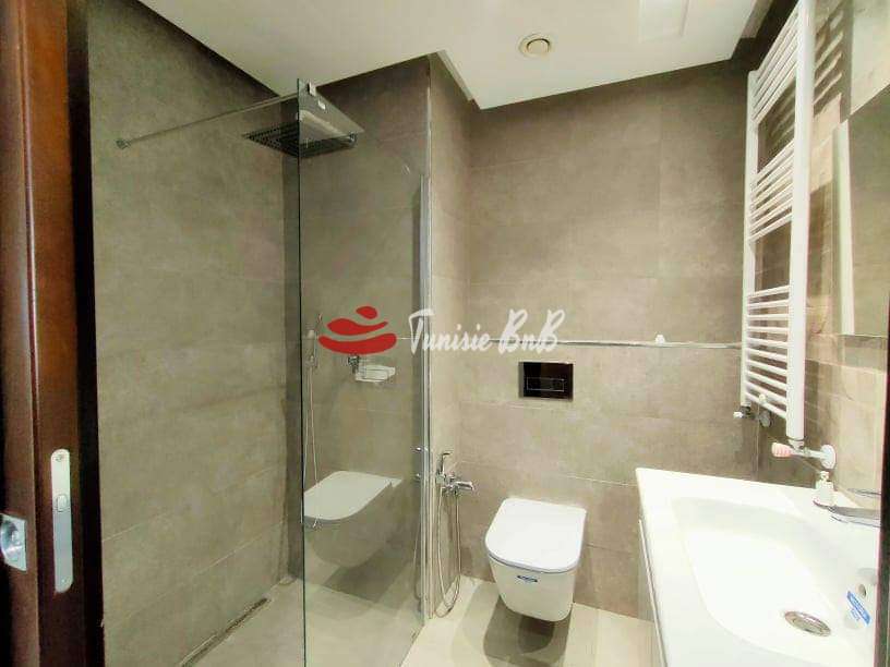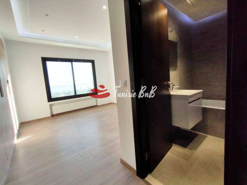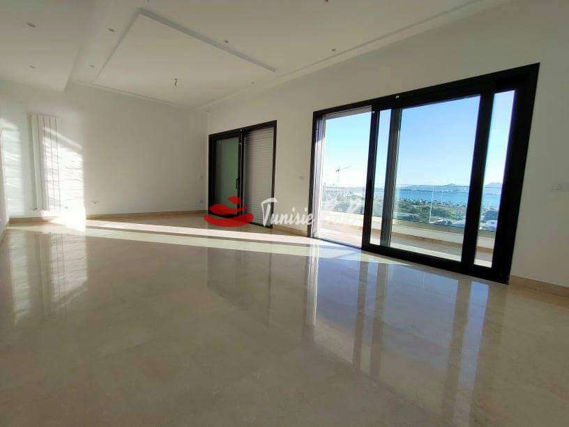 L'agence immobilière Tunisie BNB vous propose à la location un bel appartement vue lac dans une résidence récemment construite. Il est composé d'un salon avec terrasse, une cuisine équipée avec séchoir , une salle d'eau , deux suites parentales. Une place de parking au sous-sol est disponible