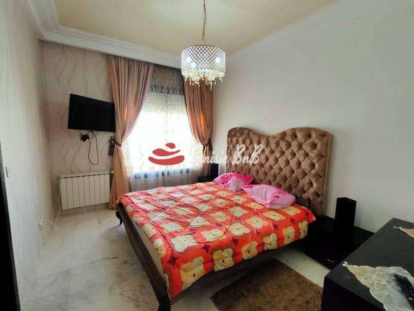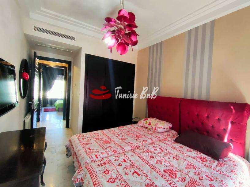L'agence immobilière Tunisie BNB vous propose à la location un appartement meublé dans une résidence sécurisée. Il est composé d'un salon, salle à manger , une salle d'eau , une cuisine équipée , deux chambres à coucher avec dressings et une suite parentale. Une place de parking au sous-sol est disponible